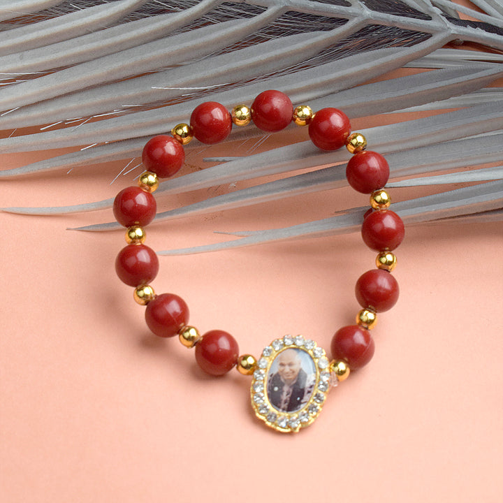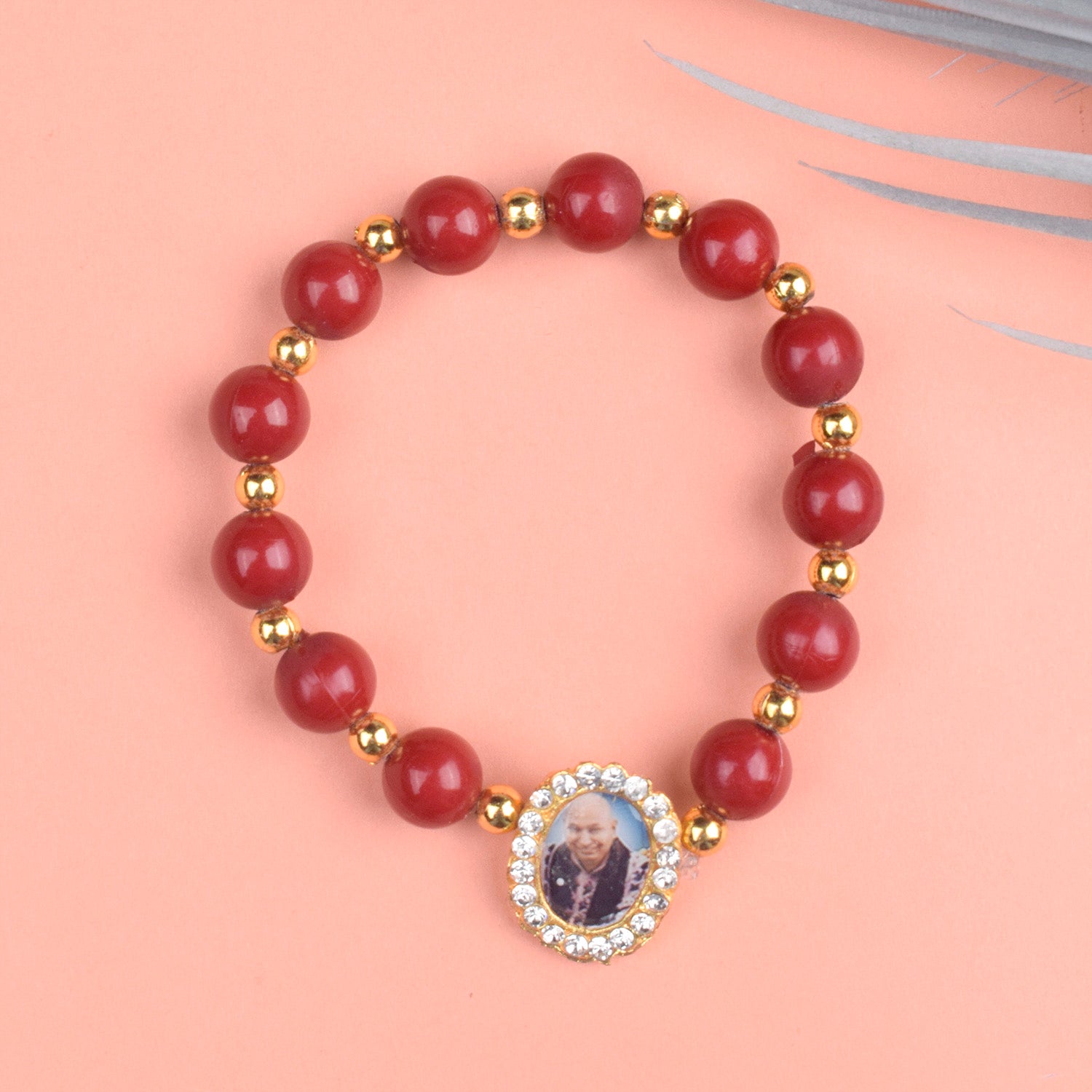 Guruji Stone Bracelets removes negative energy and and uplift the spiritual, mental and physical Health. Easy to wear, Skin Friendly. You can Gift this Beautiful Beads Bracelets to your family, friends, relative, neighbor on religious occasion like : pooja, kirtan, return gift idea, housewarming, home inauguration, Puja and other. Very beautiful bracelet made of artificial ceramic stones with smooth round finish, each bracelet is handpicked for quality check, Jai Guruji is Photo also there in the bracelet. This is matches trend with tradition. Proudly Made in India for Our Devotees.