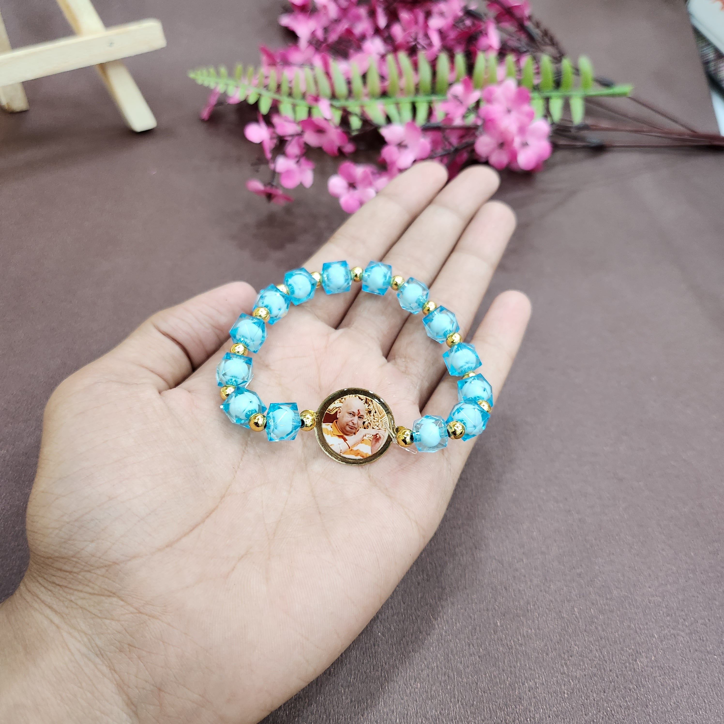 Buy Crystal Blue Crystal Pearl Guruji Swaroop Bracelet| Satvikstore.in – satvikstore.in