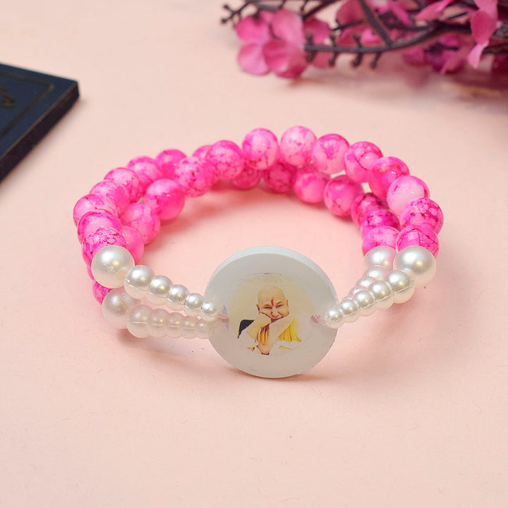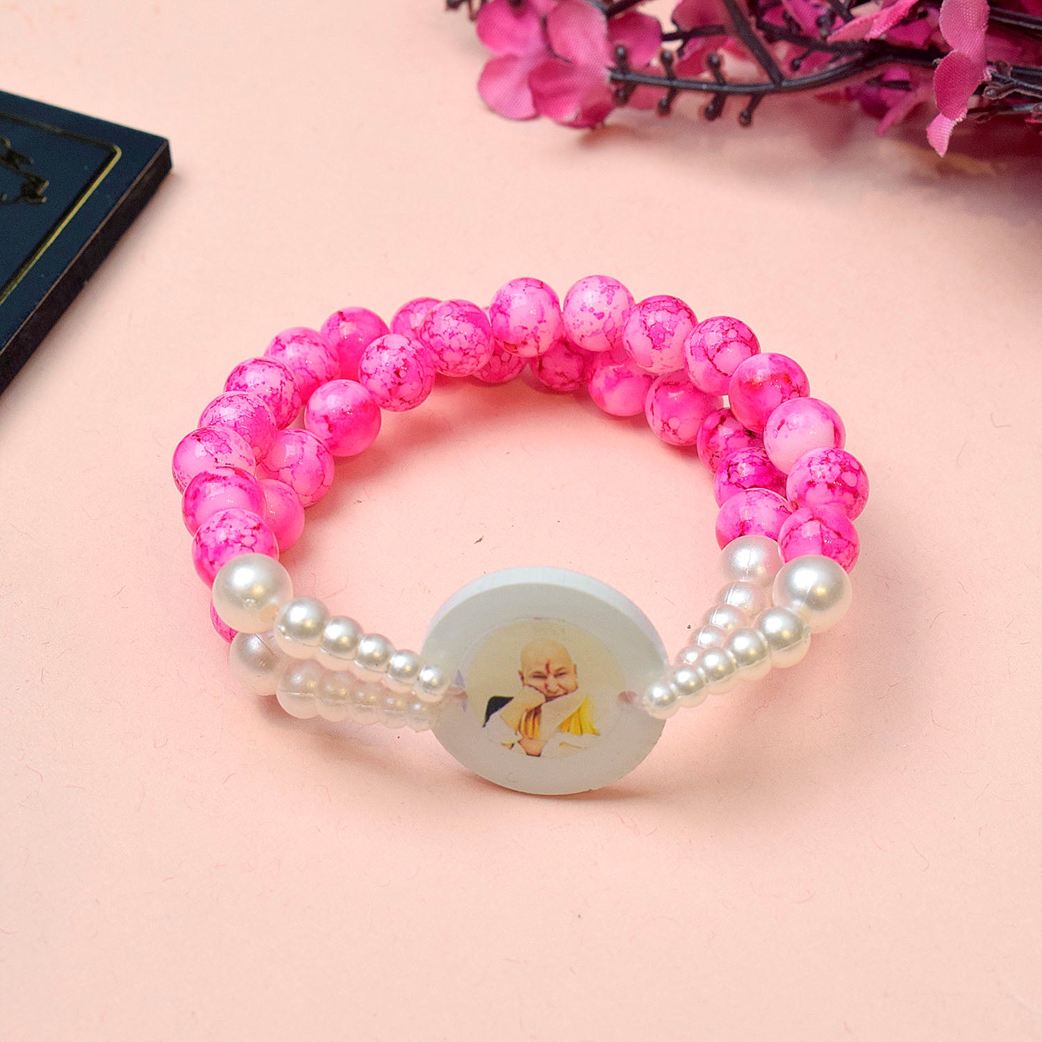 Crystal Pink Beads Double Layer & White Pearl Bracelet with Jai Guruji Swaroop