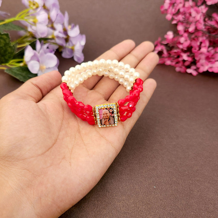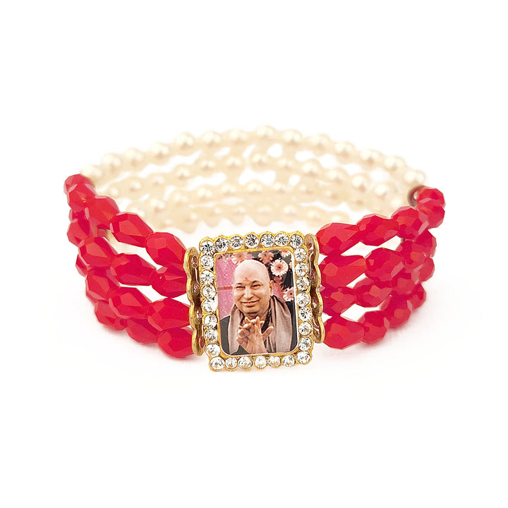 Crystal Red Beads & Pearl Bracelet with Jai Guruji Swaroop