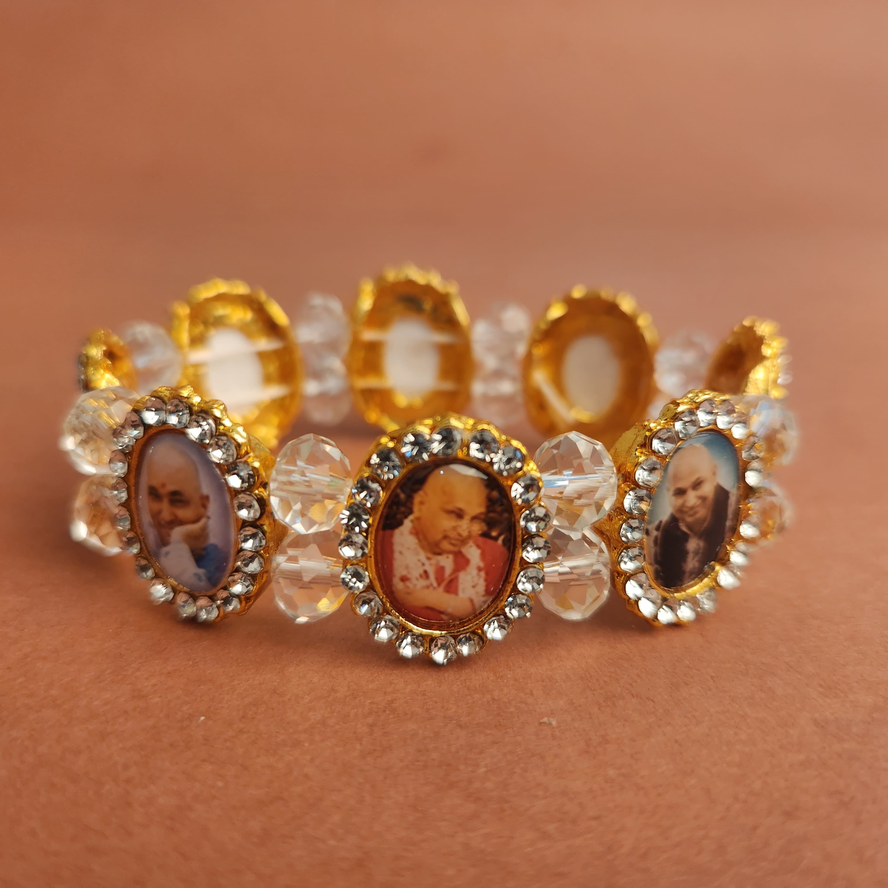Crystal Round Pearl Bracelet with Jai Guruji Swaroop Handmade Bracelets for