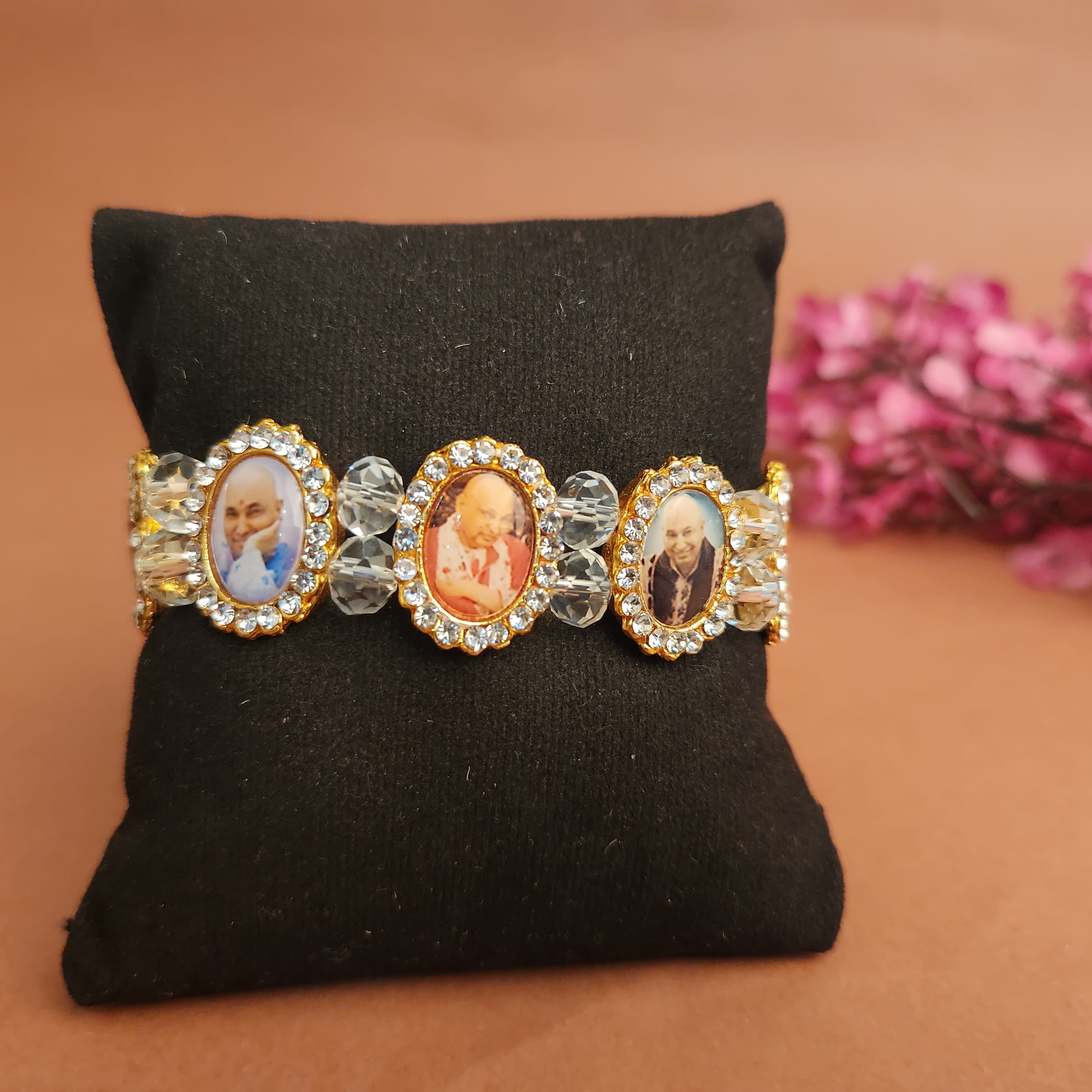 Our Guruji bracelet is a tangible symbol of divine connection. Crafted with care and reverence, it is designed to be worn close to your heart, serving as a constant reminder of Guruji's presence. The bracelet is adorned with sacred symbols and gemstones that hold spiritual significance, channeling positive energy and protection.