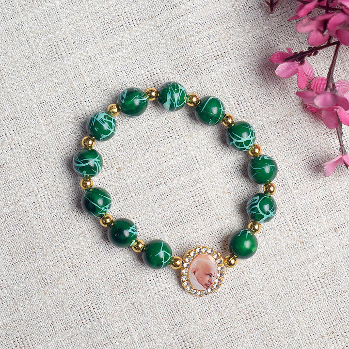 Dark Green Round Pearl Bracelet with Jai Guruji Swaroop Handmade Bracelets for Men and Women