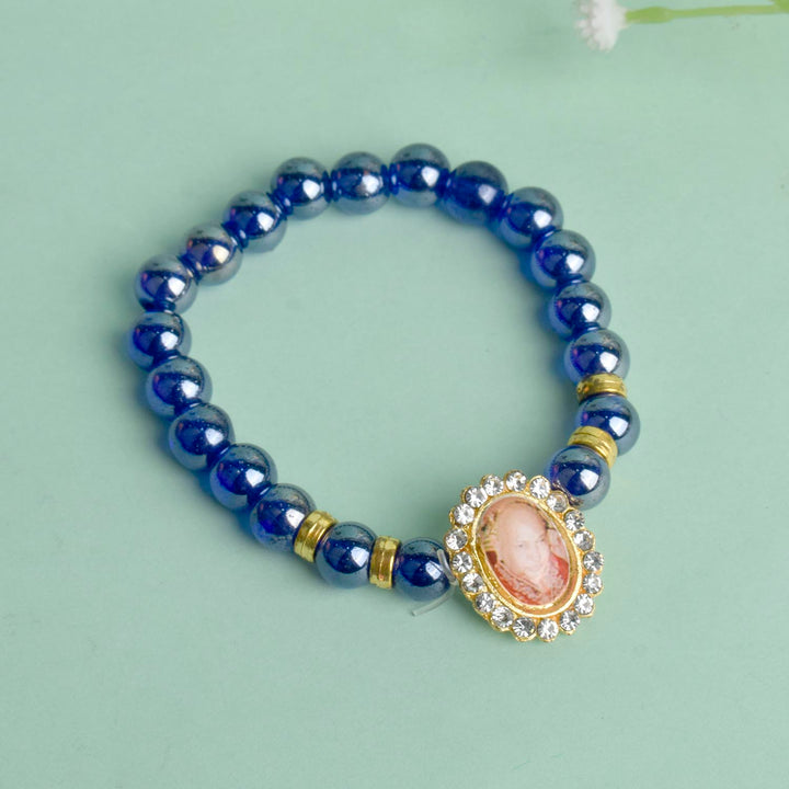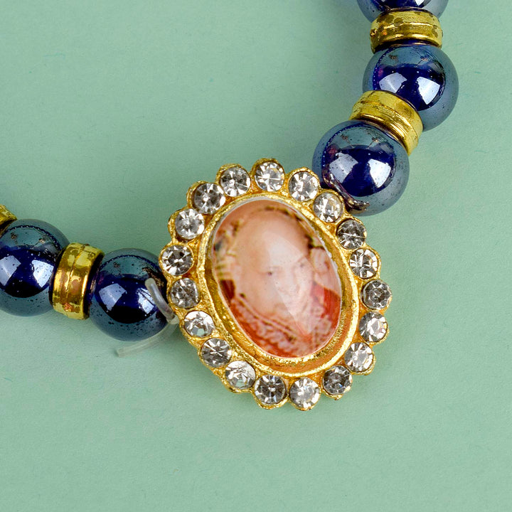 Dark Blue Shiny Beads Single Layer Guruji Swaroop Bracelet