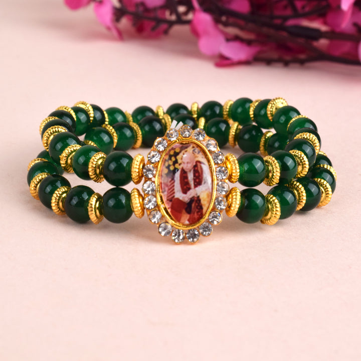 Buy Online Guruji Swaroop Braceket: Dark Green Beaded | Satvikstore.in – satvikstore.in
