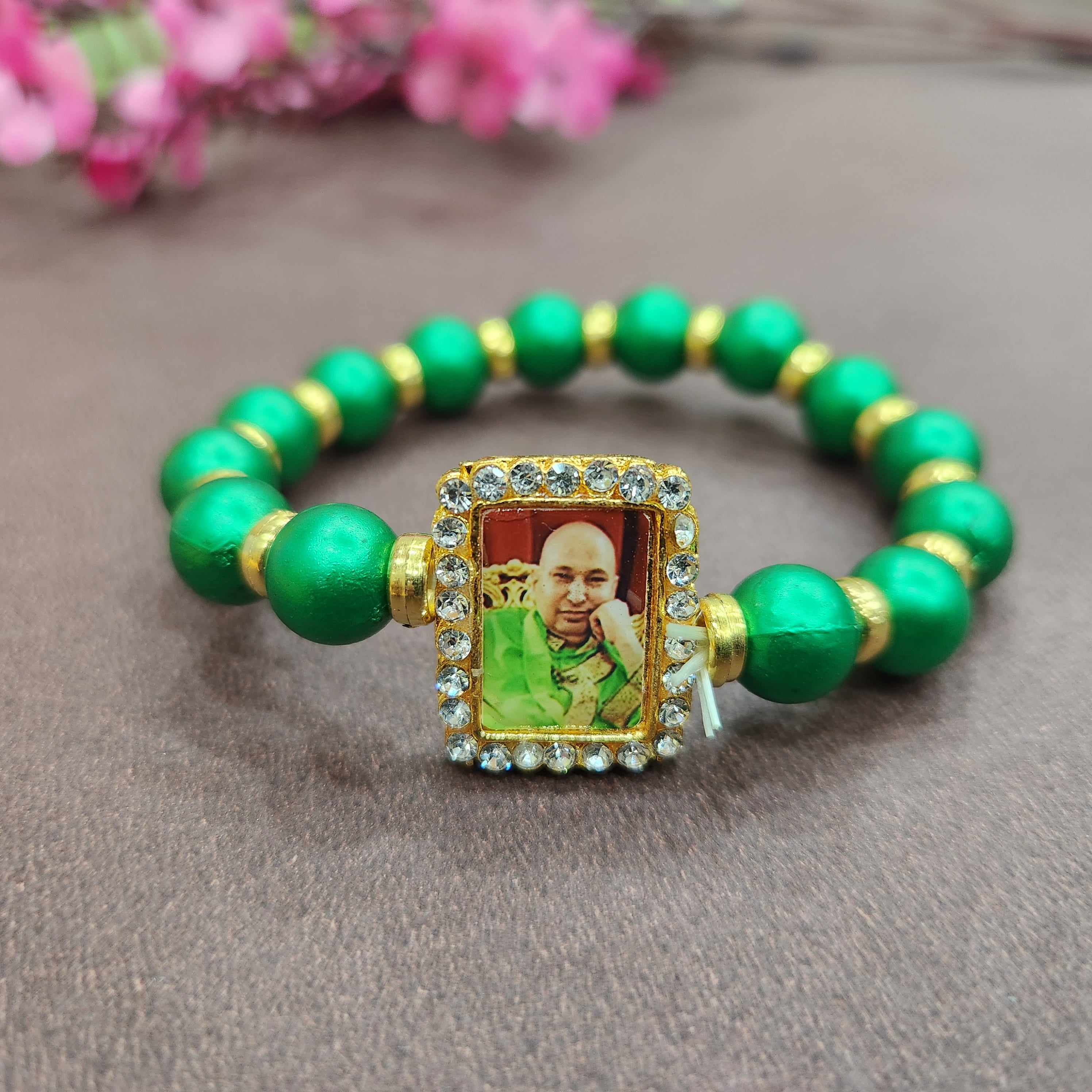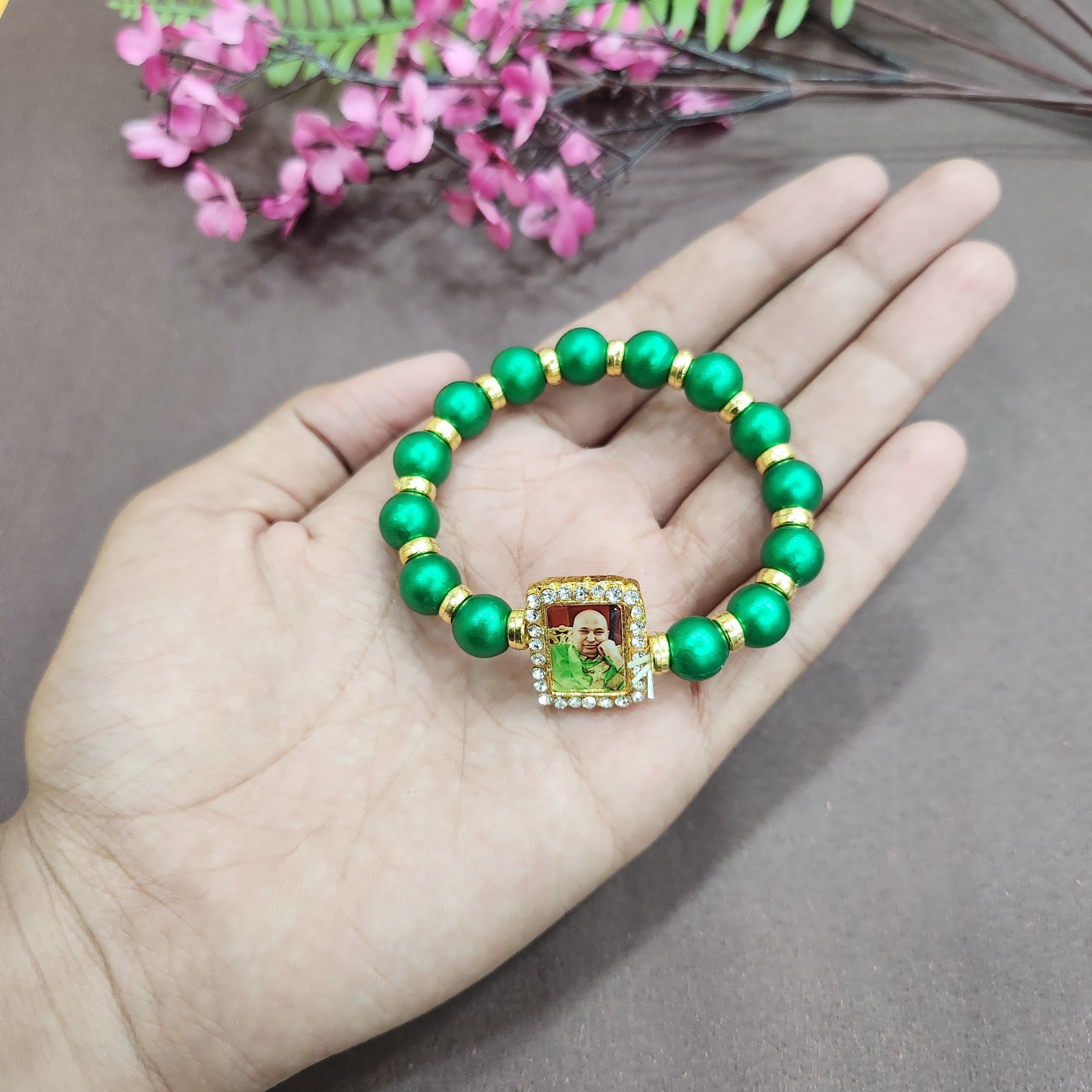 Dark Green Round Pearl Bracelet with Jai Guruji Swaroop Handmade Bracelets for Men and Women