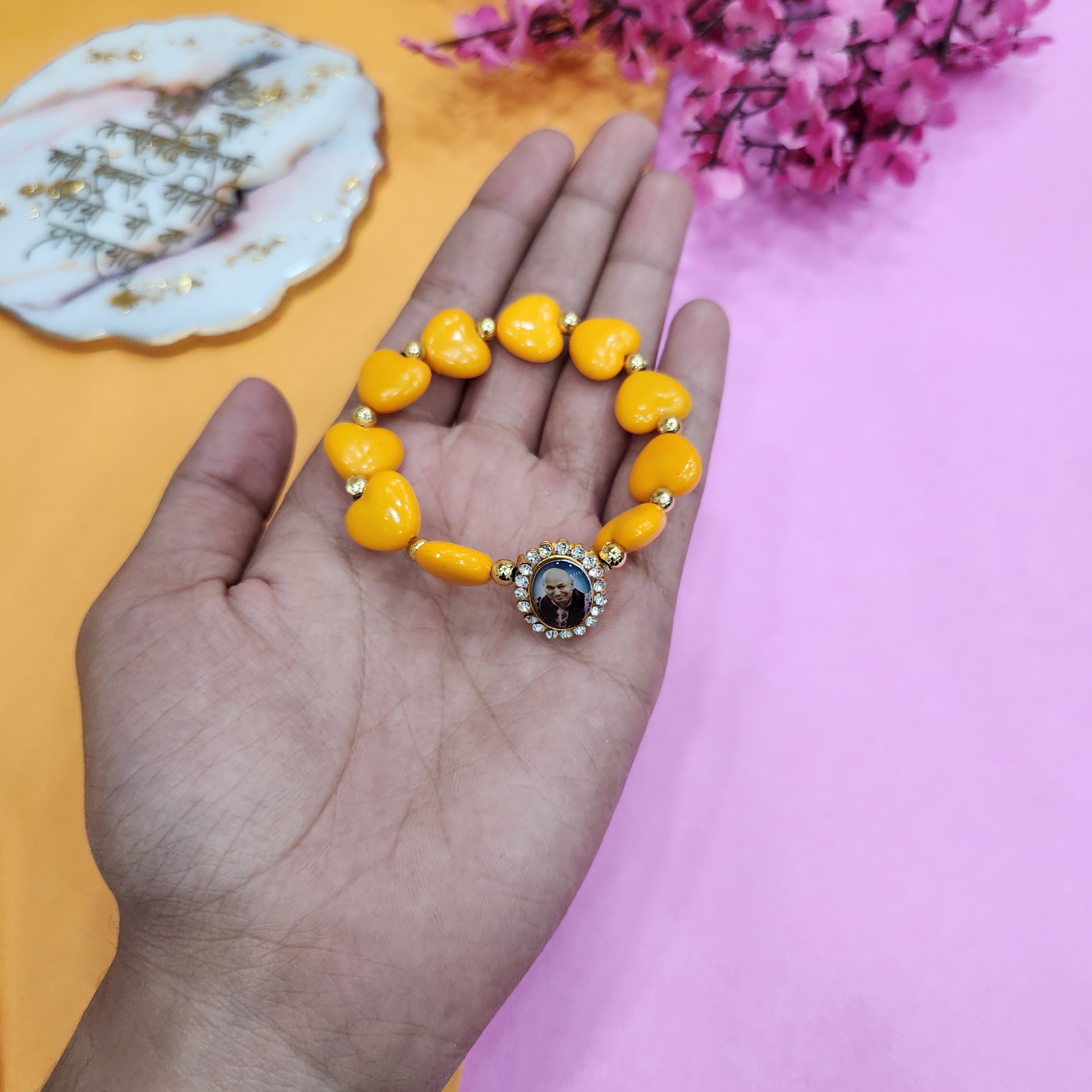 • Item Name: Dark Yellow Heart Shape Bracelet with Jai Guruji Swaroop Handmade Bracelets for Men and Women