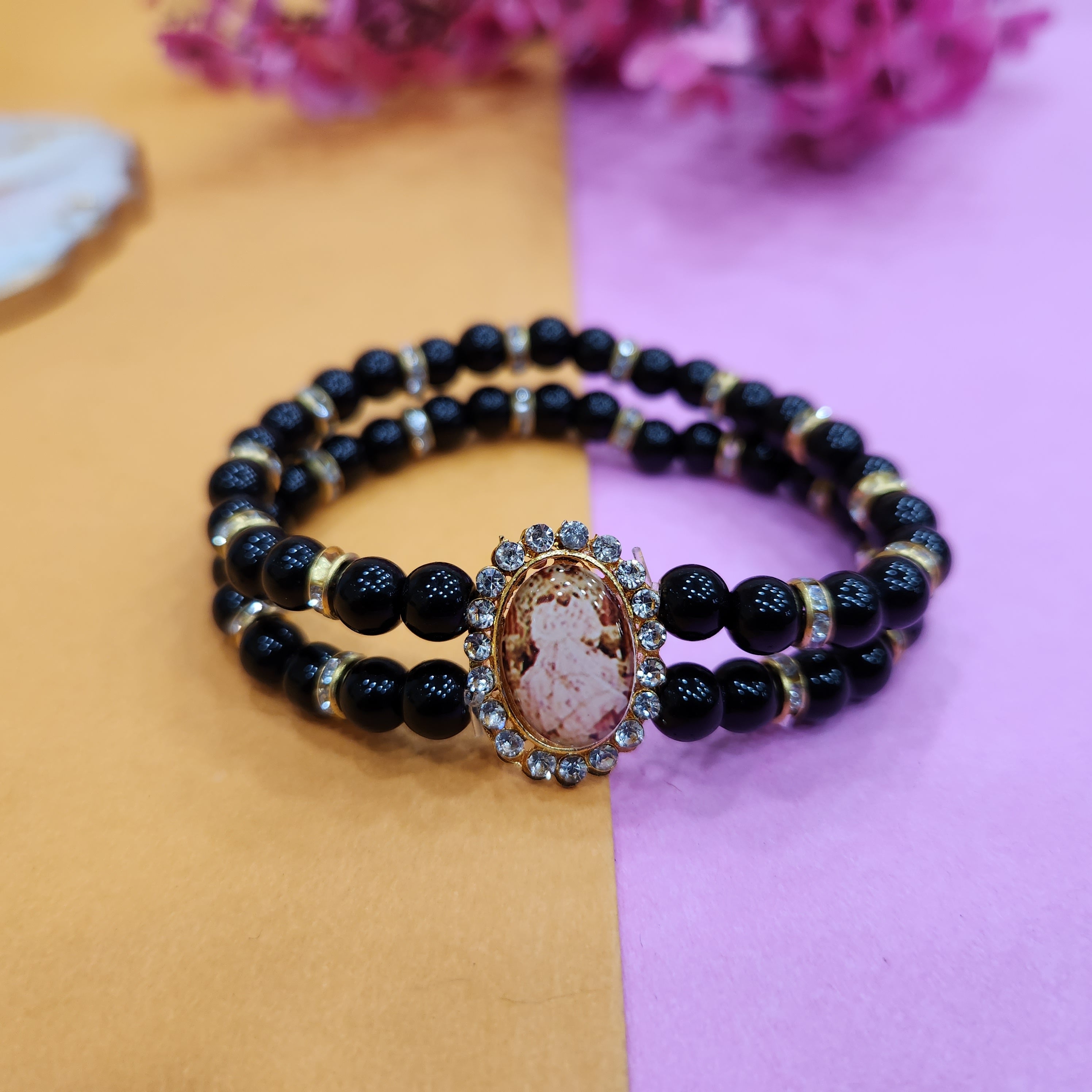 • Item Name: Double Band Round Pearl Bracelet with Jai Guruji Swaroop Handmade Bracelets for Men and Women