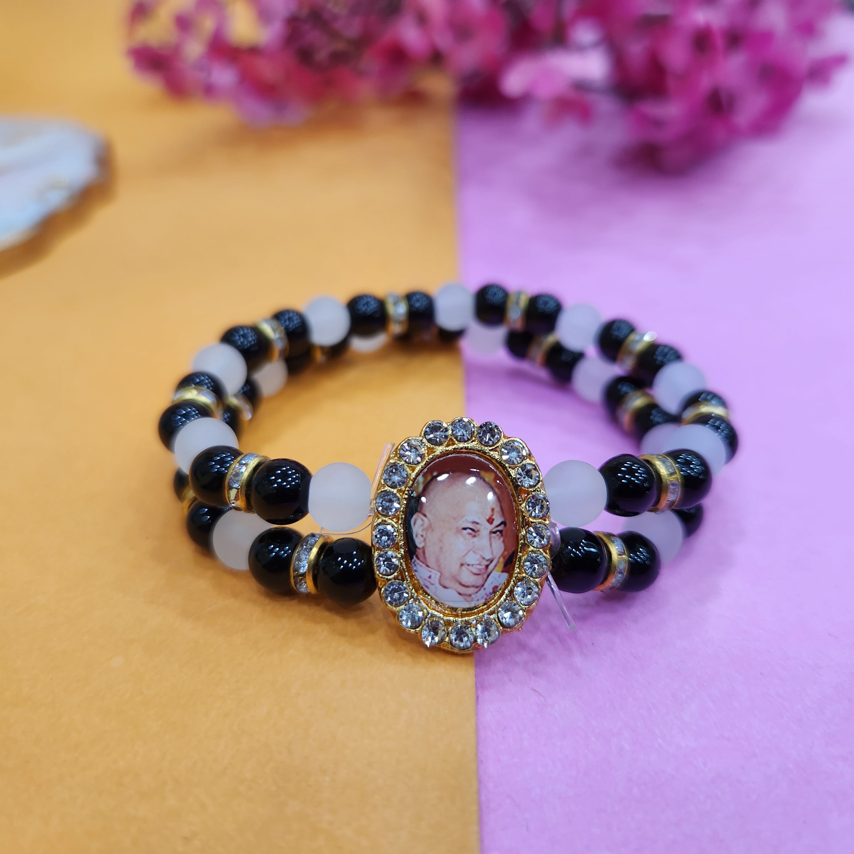 About Product: Guruji Stone Bracelets removes negative energy and and uplift the spiritual, mental and physical Health. Easy to wear, Skin Friendly. You can Gift this Beautiful Beads Bracelets to your family, friends, relative, neighbor on religious occasion like : pooja, kirtan, return gift idea, housewarming, home inauguration, Puja and other. Very beautiful bracelet made of artificial ceramic stones with smooth round finish, each bracelet is handpicked for quality check, Jai Guruji is Photo also there in the bracelet. This is Red and Black matches trend with tradition. Proudly Made in India for Our Devotees.