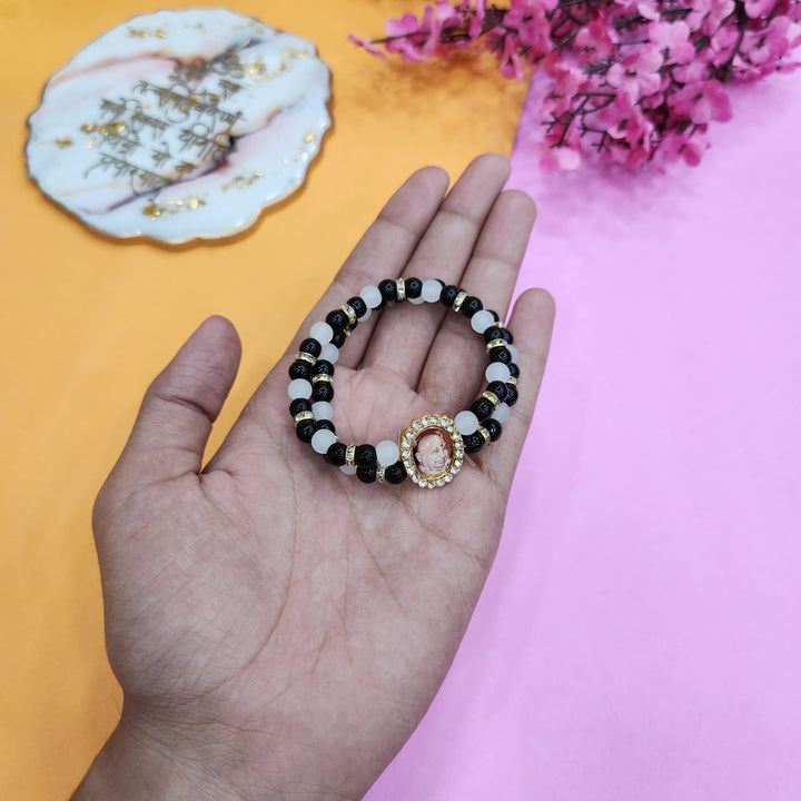 Black And Light Grey Double Band Round Pearl Bracelet with Jai Guruji Swaroop Handmade Bracelets for Men and Women