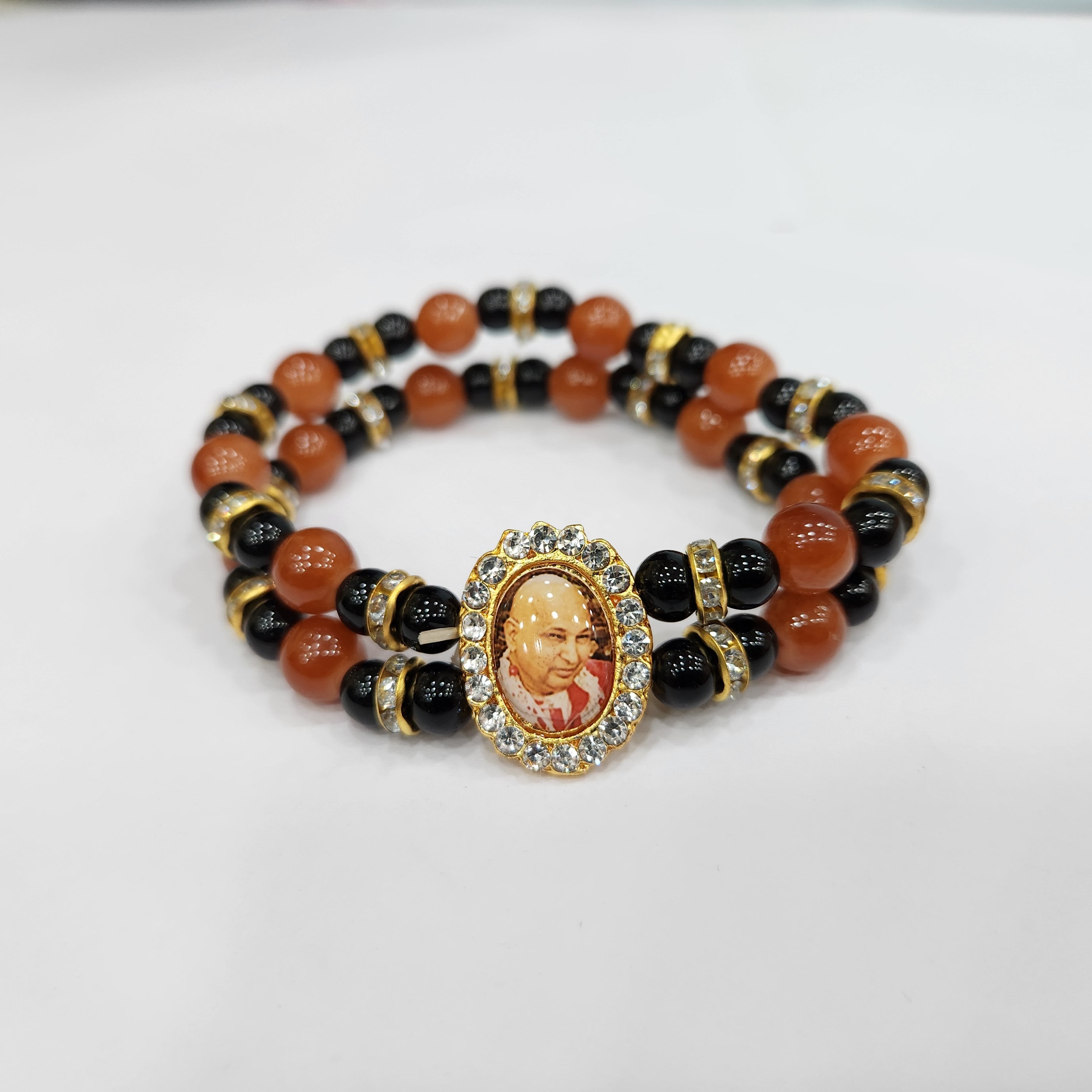 About Product: Guruji Stone Bracelets removes negative energy and and uplift the spiritual, mental and physical Health. Easy to wear, Skin Friendly. You can Gift this Beautiful Beads Bracelets to your family, friends, relative, neighbor on religious occasion like : pooja, kirtan, return gift idea, housewarming, home inauguration, Puja and other. Very beautiful bracelet made of artificial ceramic stones with smooth round finish, each bracelet is handpicked for quality check, Jai Guruji is Photo also there in the bracelet. This is Red and Black matches trend with tradition. Proudly Made in India for Our Devotees.