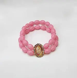 • Item Name: Light Pink Double Band Round Pearl Bracelet with Jai Guruji Swaroop Handmade Bracelets for Men and Women