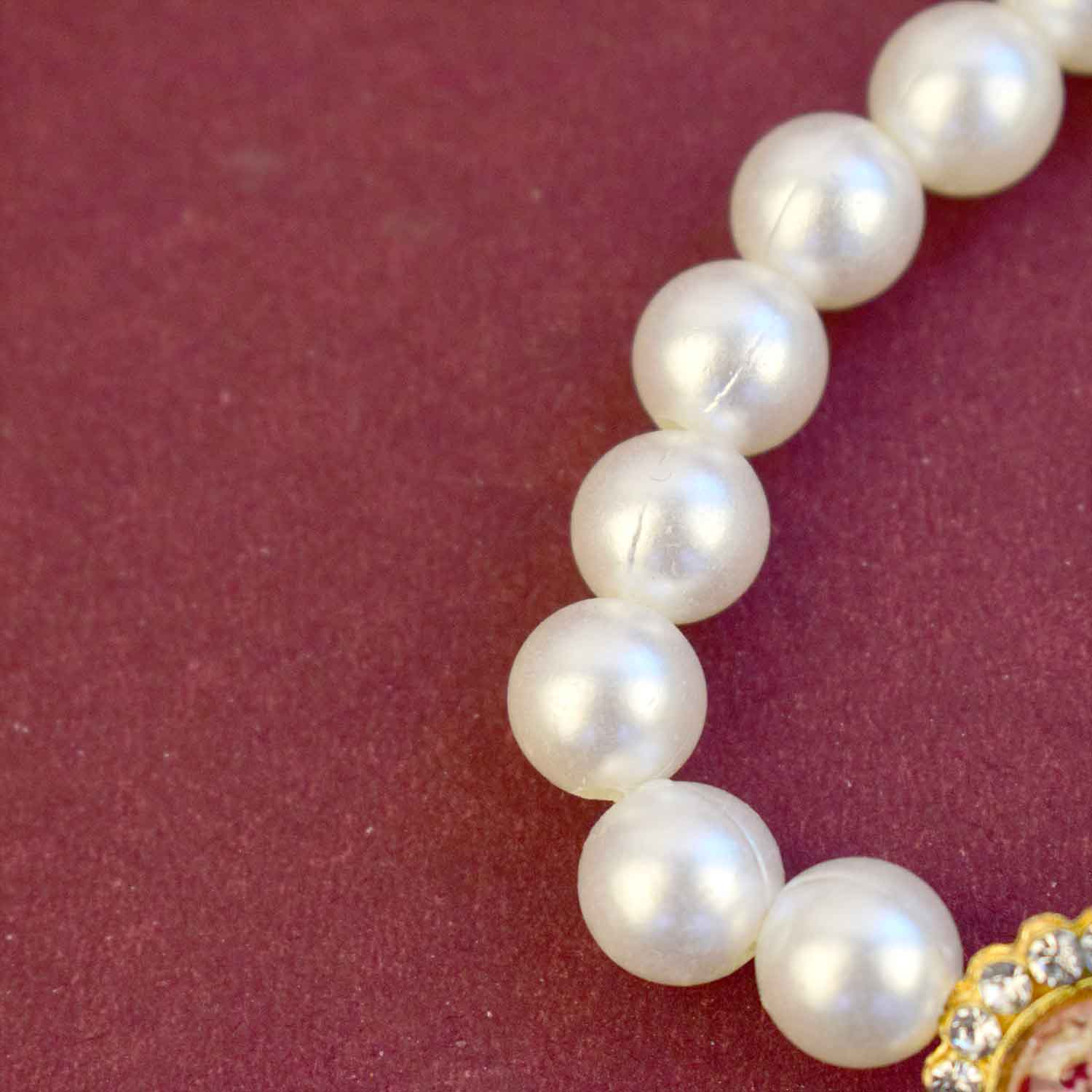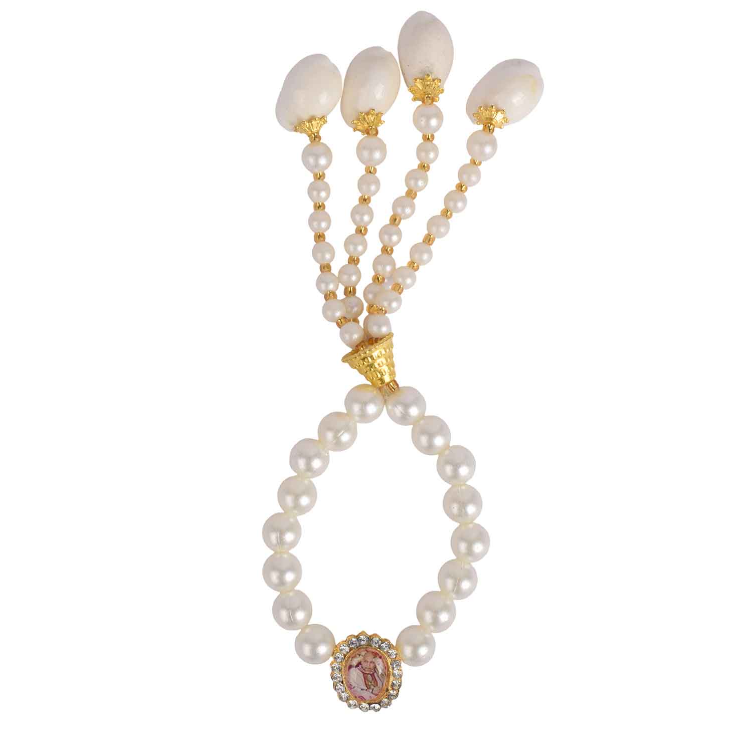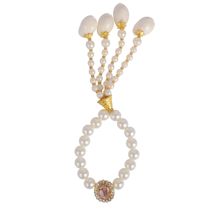 • Item Name: Guruji Swaroop Bracelet – Designer Handcrafted White Pearls with Latkan