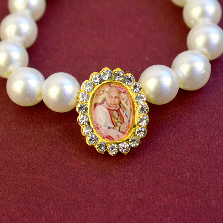 Elegant Guruji Swaroop Bracelet – White Pearls with Latkan