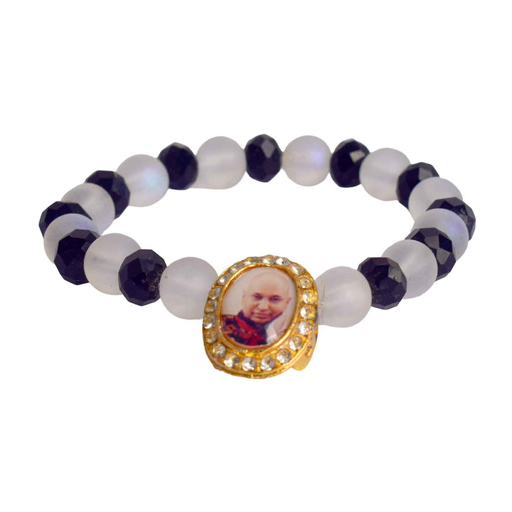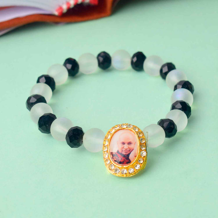 β€’ Item Name: Guruji Swaroop Bracelet – Elegant White & Black Beads