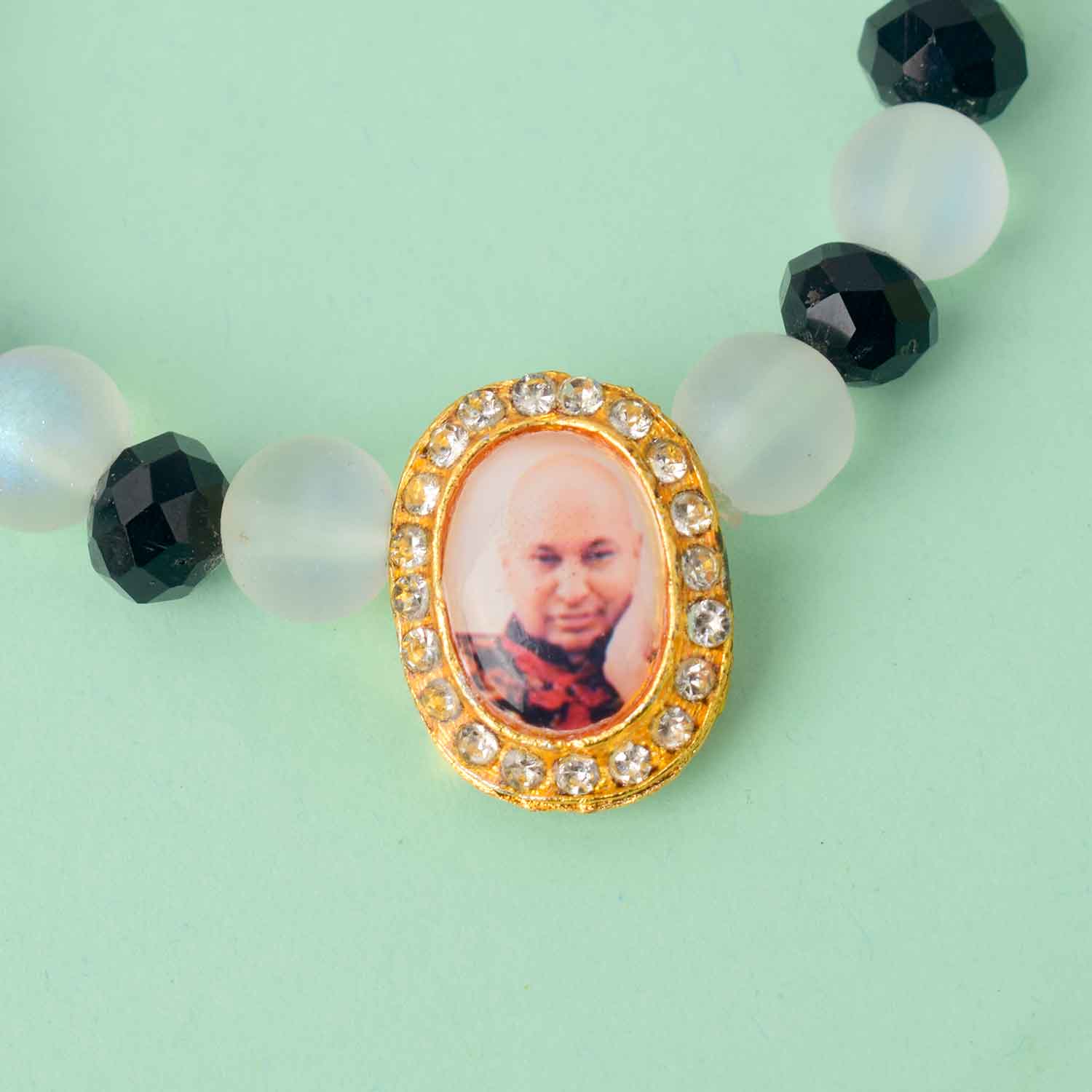 Our Guruji bracelet is a tangible symbol of divine connection. Crafted with care and reverence, it is designed to be worn close to your heart, serving as a constant reminder of Guruji's presence. The bracelet is adorned with sacred symbols and gemstones that hold spiritual significance, channeling positive energy and protection.