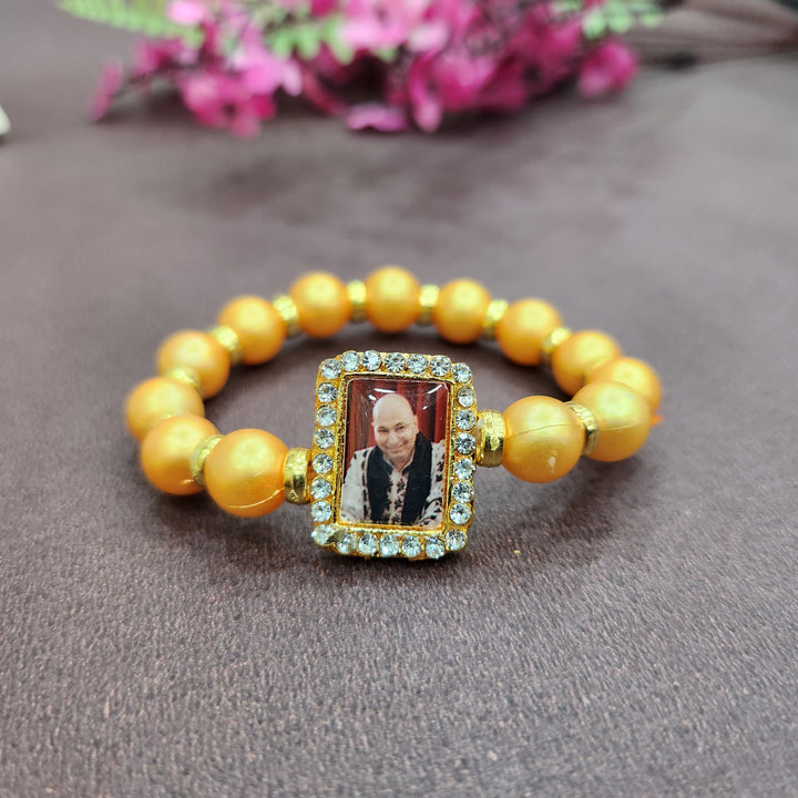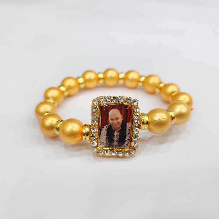 Golden Yellow Round Pearl Bracelet with Jai Guruji Swaroop Handmade Bracelets for Men and Women.