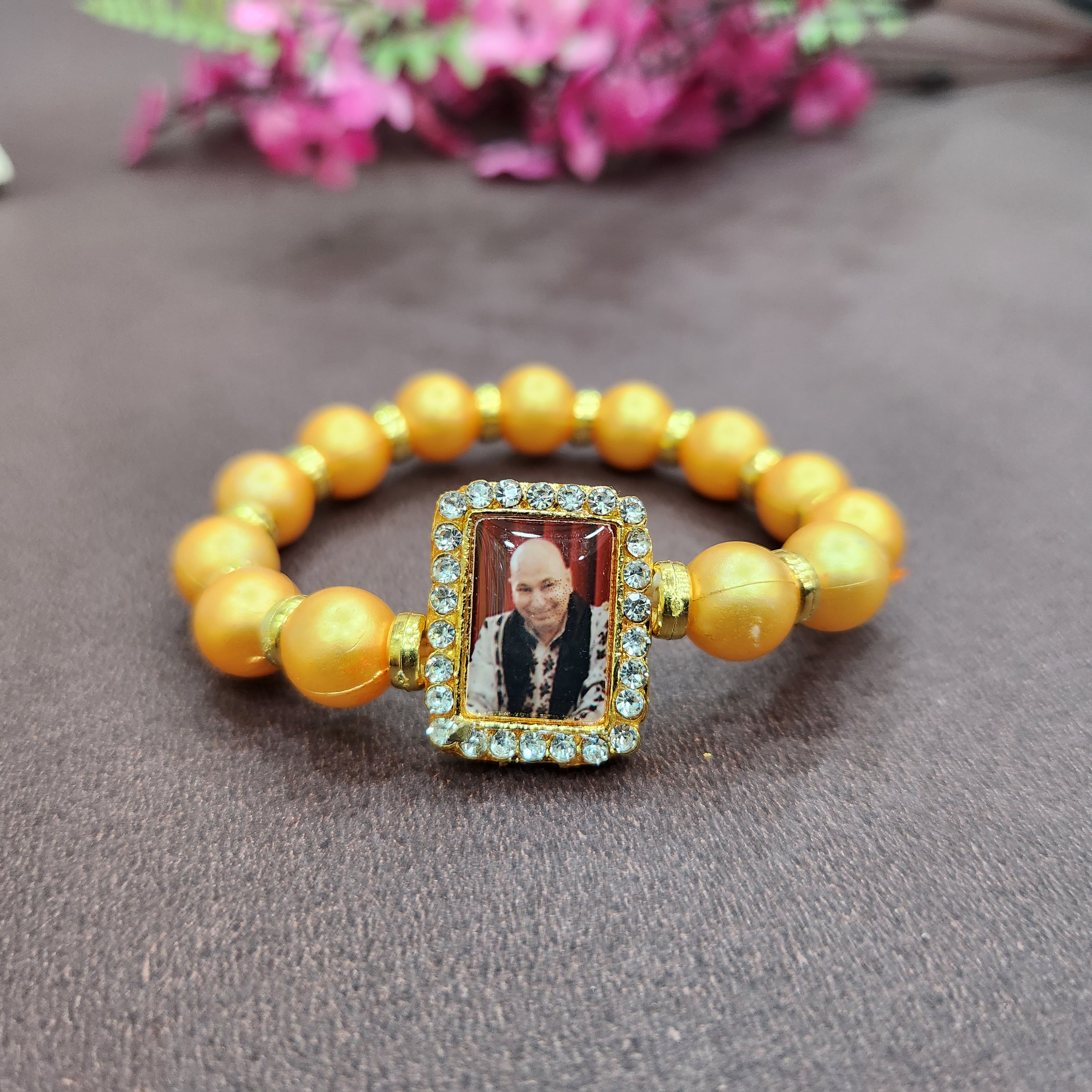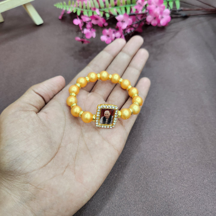 • Item Name:Β Golden Yellow Round Pearl Bracelet with Jai Guruji SwaroopΒ Handmade Bracelets for Men and Women.