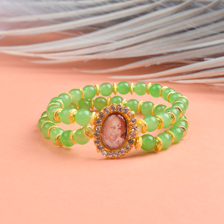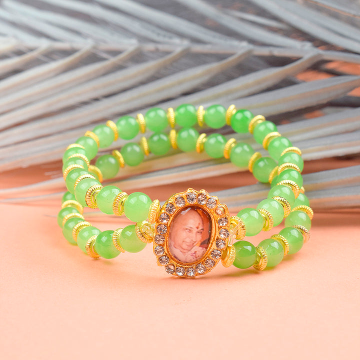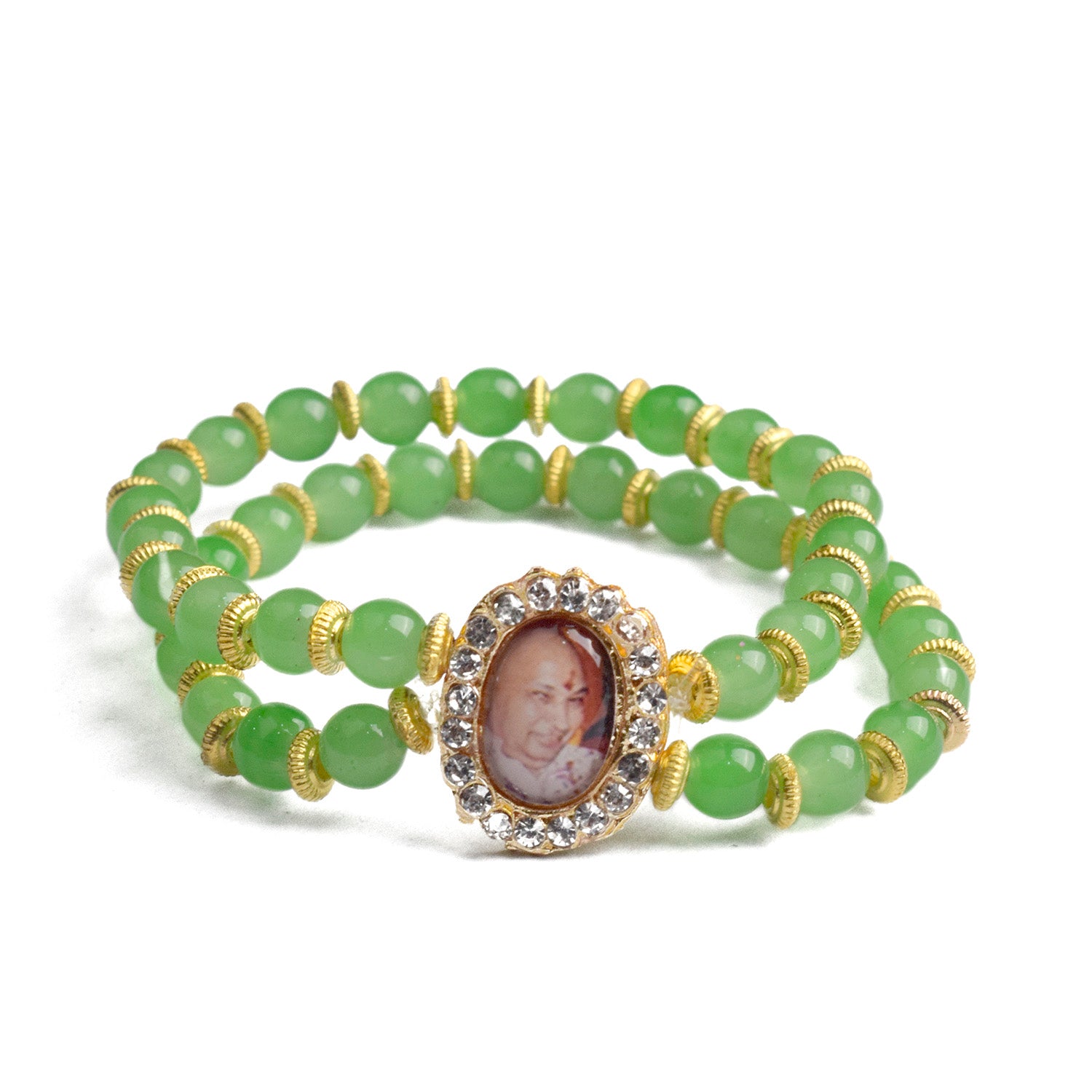 Green Sea Stone Bracelet with Jai Guruji Swaroop