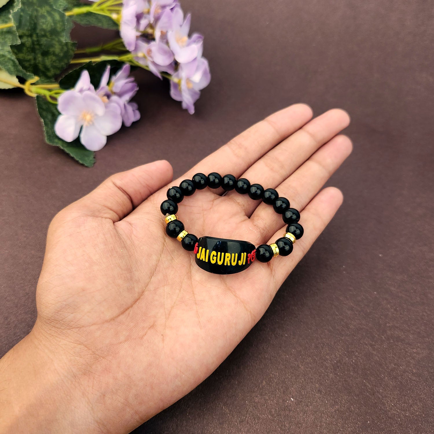 Our Guruji bracelet is a tangible symbol of divine connection. Crafted with care and reverence, it is designed to be worn close to your heart, serving as a constant reminder of Guruji's presence. The bracelet is adorned with sacred symbols and gemstones that hold spiritual significance, channeling positive energy and protection.