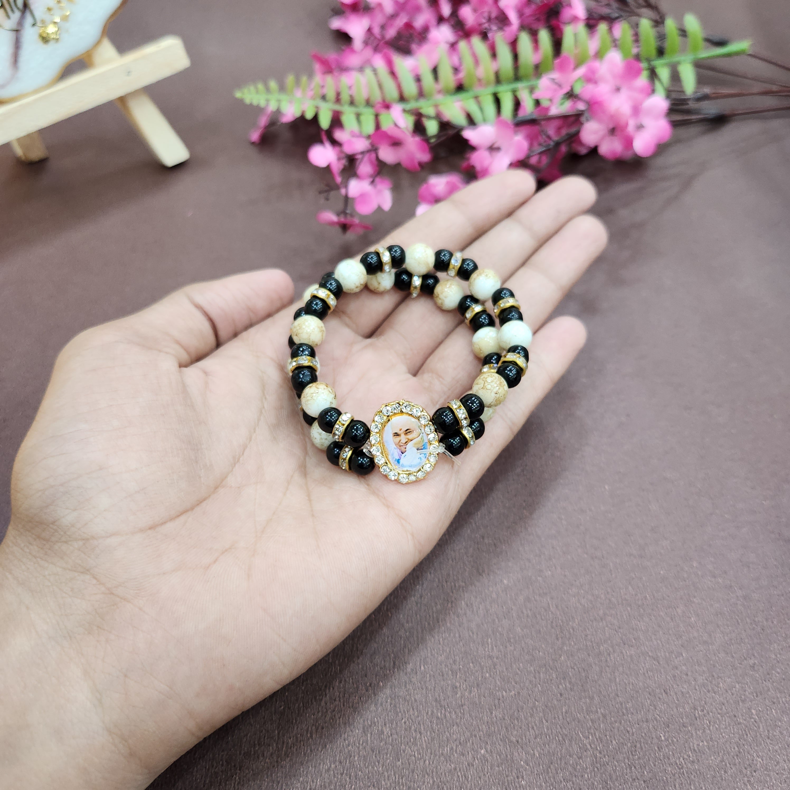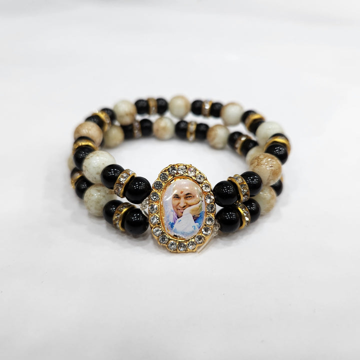 Our Guruji bracelet is a tangible symbol of divine connection. Crafted with care and reverence, it is designed to be worn close to your heart, serving as a constant reminder of Guruji's presence. The bracelet is adorned with sacred symbols and gemstones that hold spiritual significance, channeling positive energy and protection.