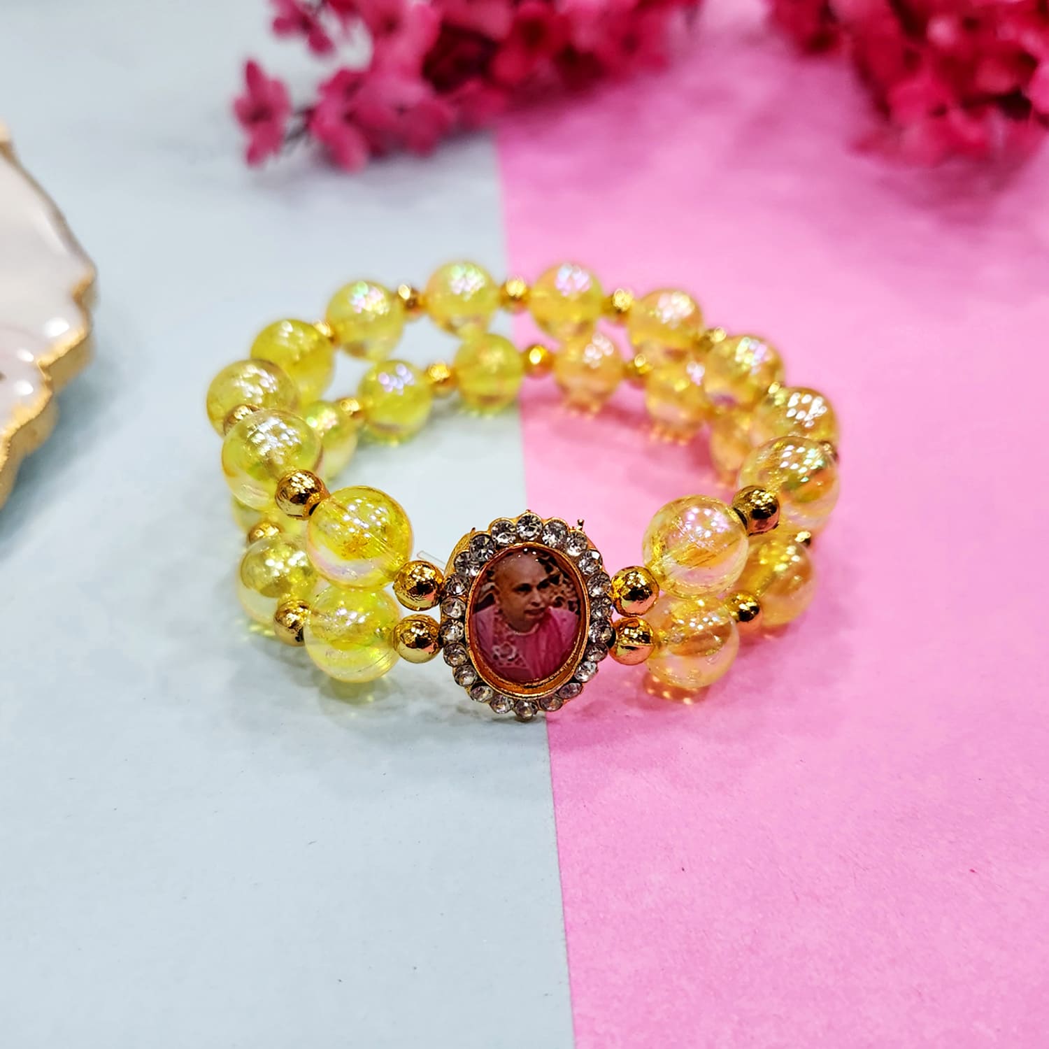 Light Yellow Beaded Guru Ji Maharaj Swaroop Bracelet | Satvikstore.in – satvikstore.in
