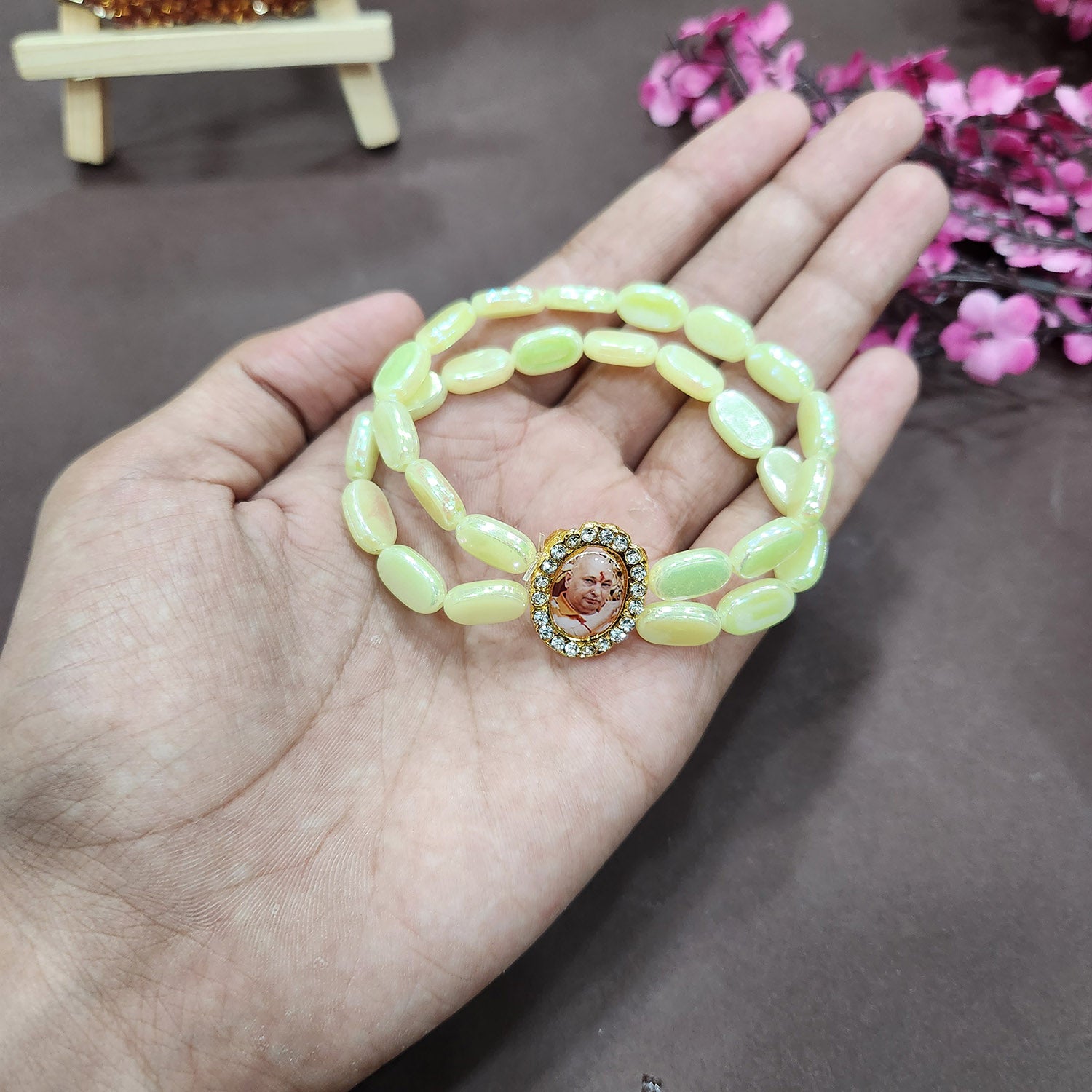 Light Yellow Bracelet with Jai Guruji Swaroop Handmade Bracelets for Men and Women