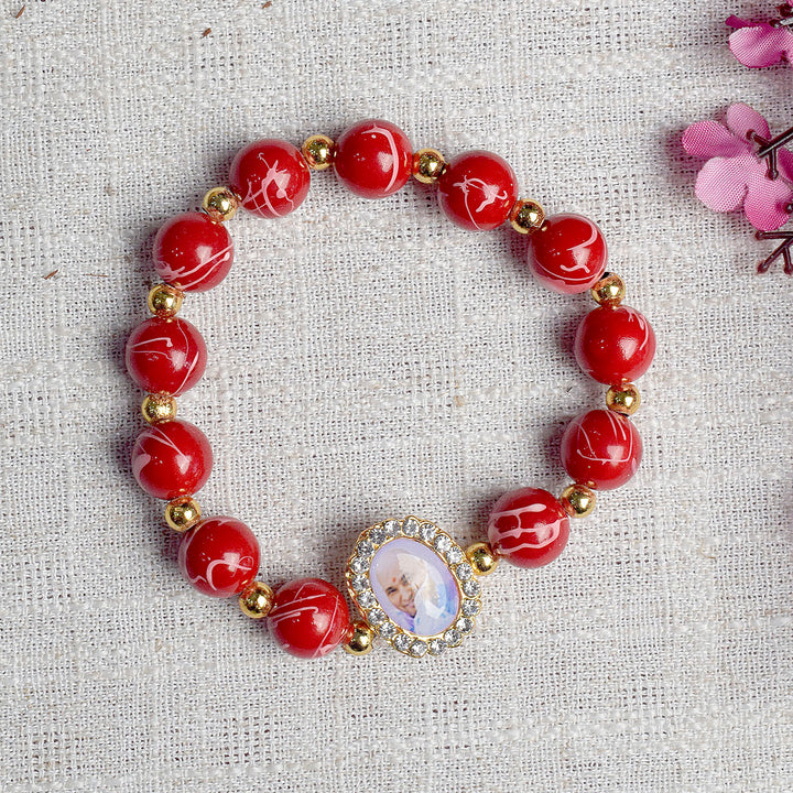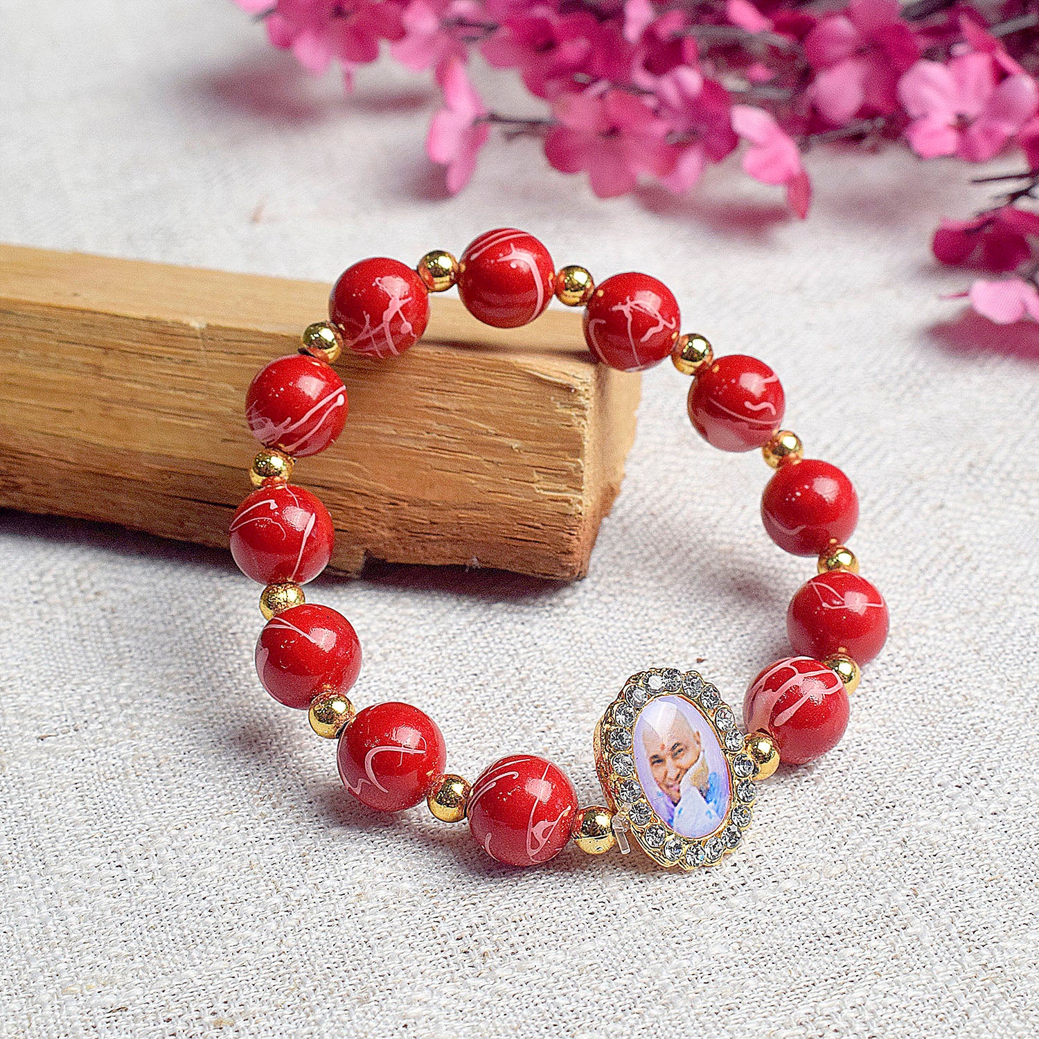 About Product:Β Guruji Stone Bracelets removes negative energy and and uplift the spiritual, mental and physical Health.Β Easy to wear, Skin Friendly.Β You can Gift this Beautiful Beads Bracelets to your family, friends, relative, neighbor on religious occasion like : pooja, kirtan, return gift idea, housewarming, home inauguration, Puja and other.Β Very beautiful bracelet made of artificial ceramic stones with smooth round finish, each bracelet is handpicked for quality check, Jai Guruji is Photo also there in the bracelet. This is Red and Black matches trend with tradition. Proudly Made in India for Our Devotees.
