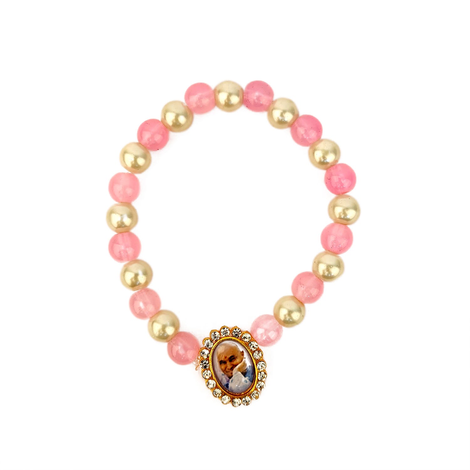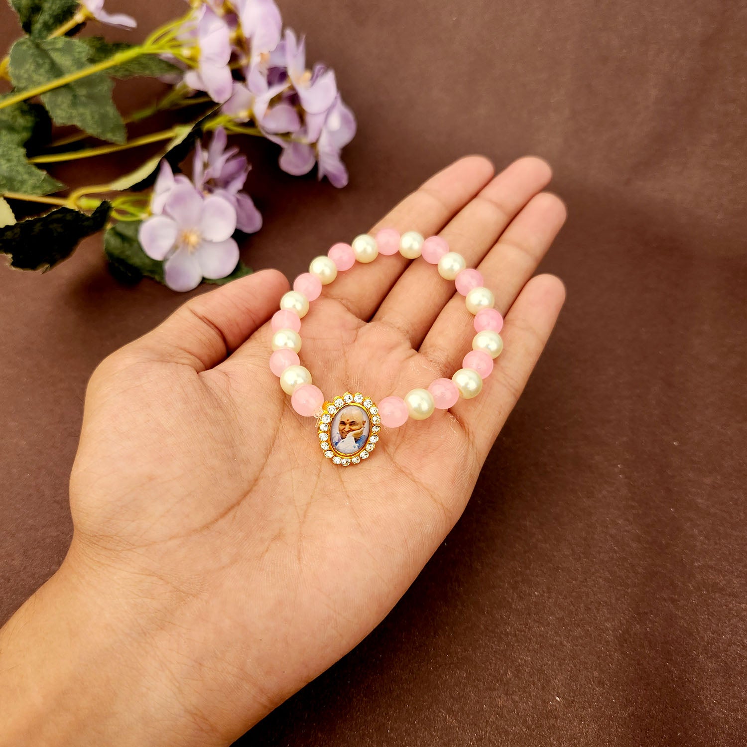 Pink and White Beaded Guru Ji Maharaj Swaroop Bracelet |Satvikstore.in – satvikstore.in