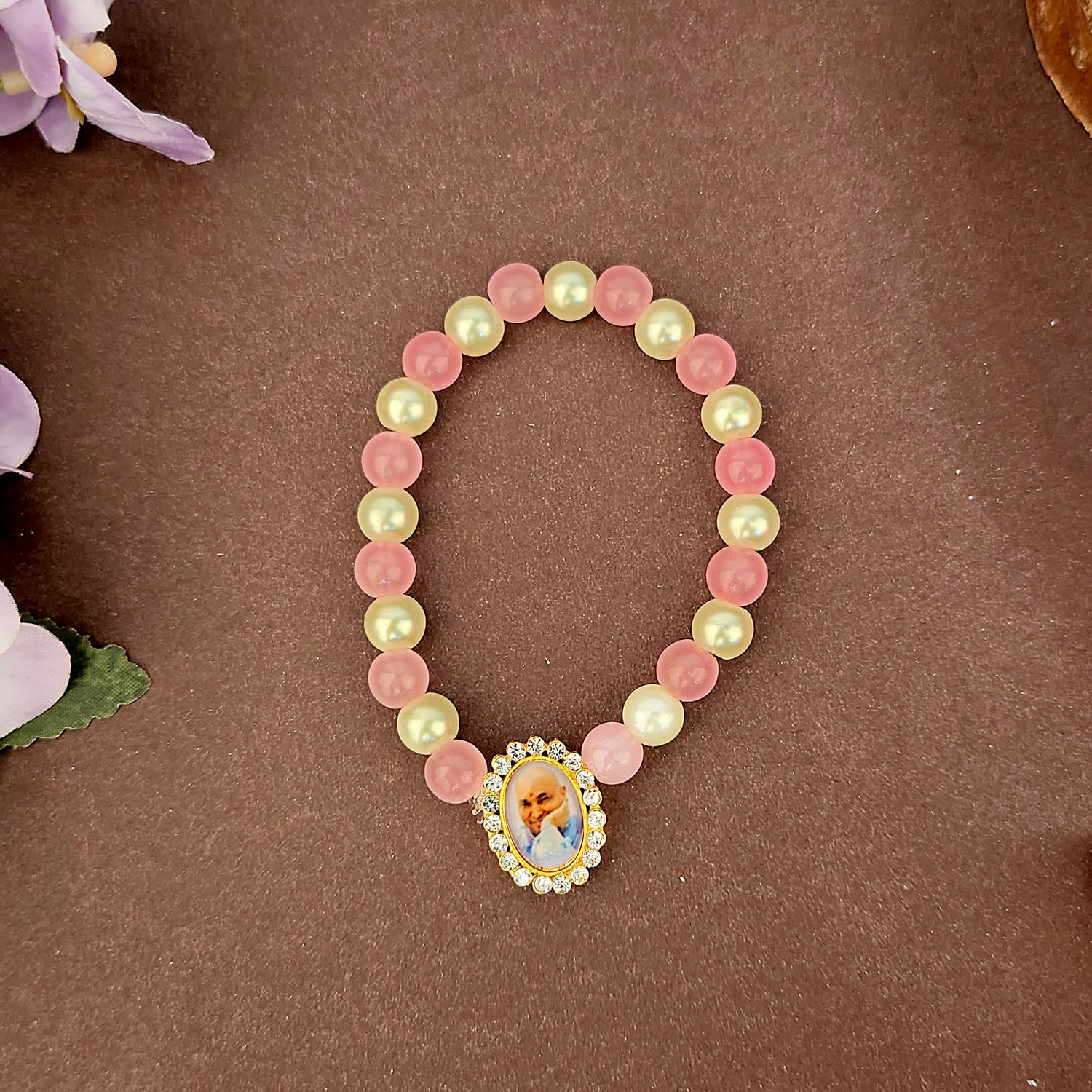 Pink and White Beaded Guru Ji Maharaj Handmade Bracelets for Men and Women