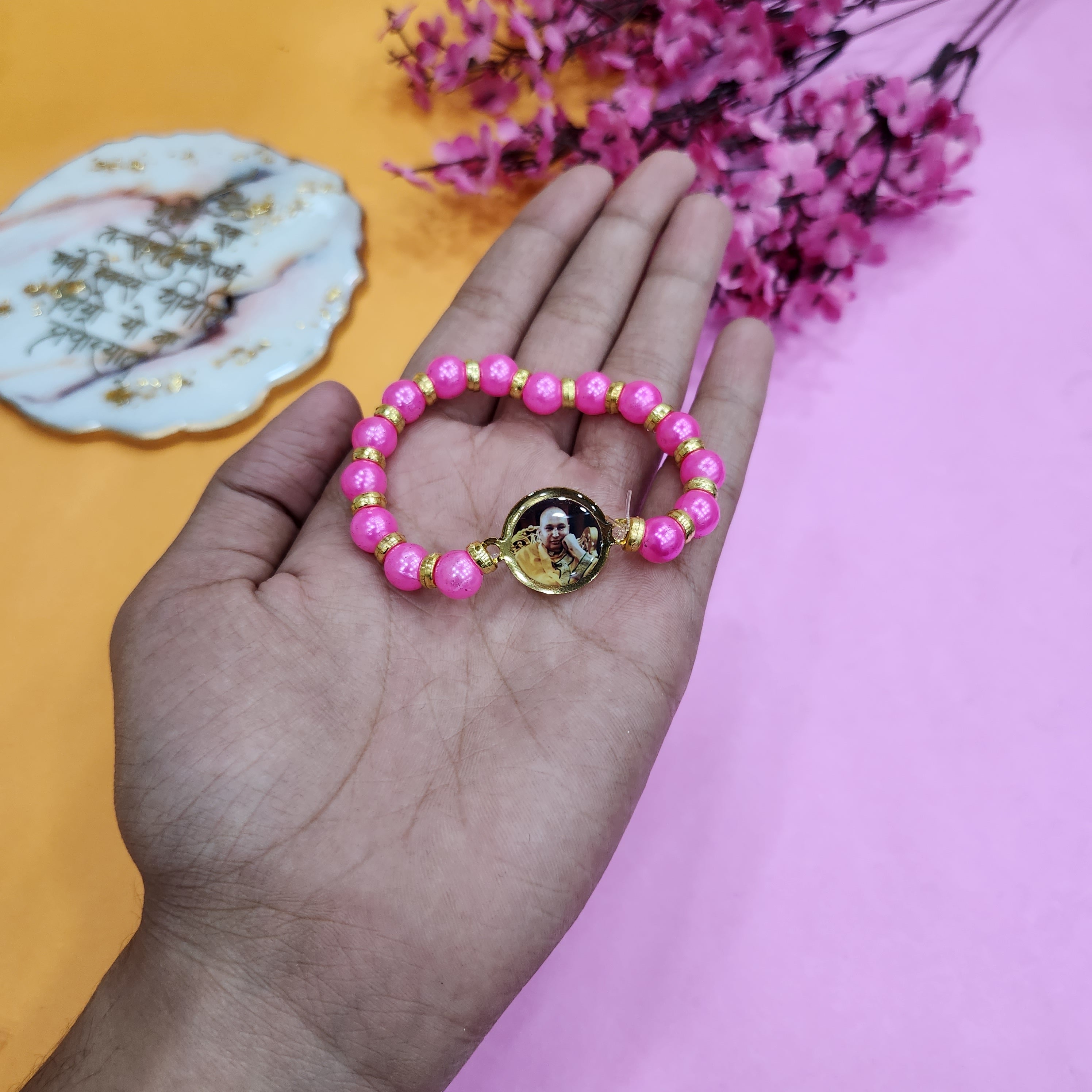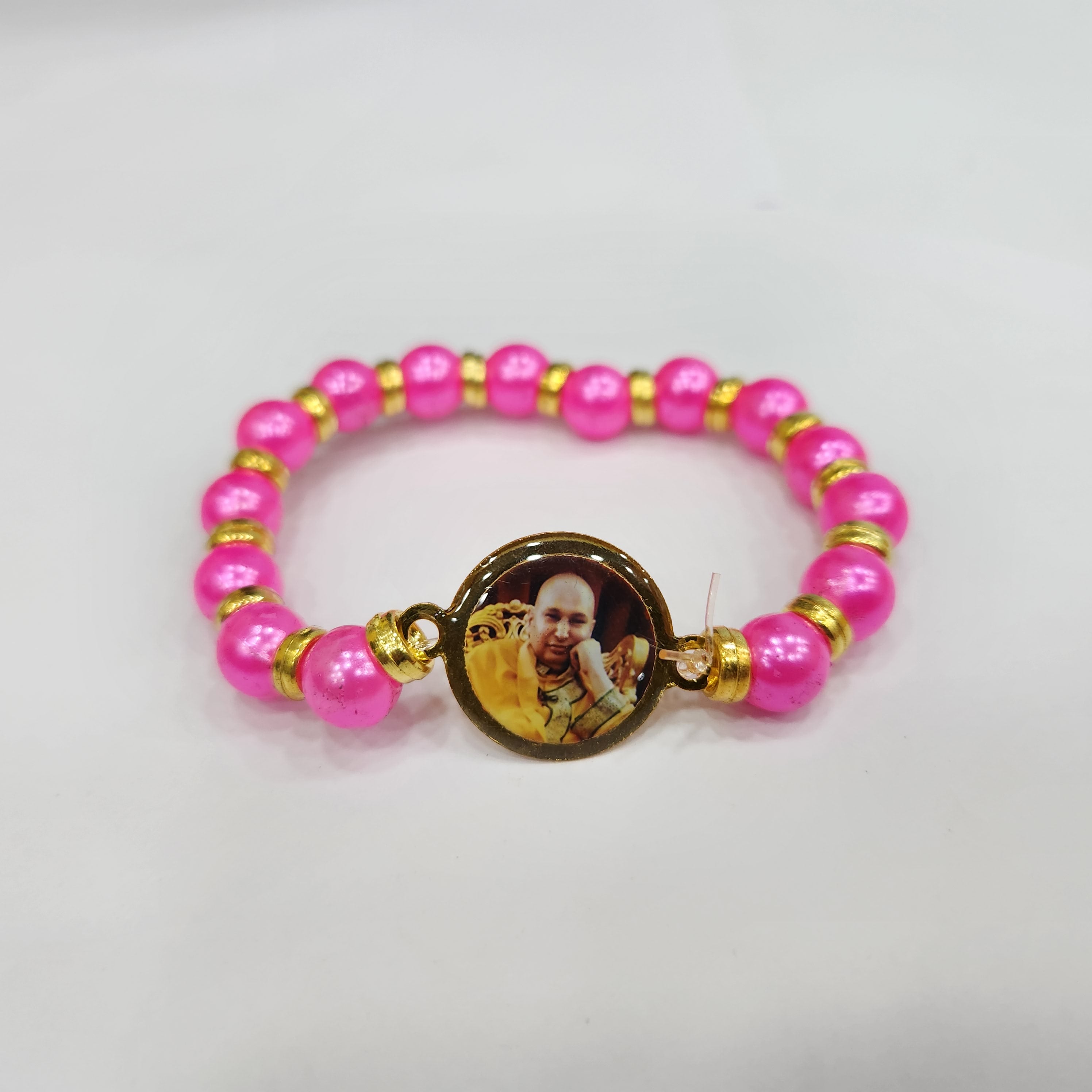 • Item Name:Β  Pink Round Pearl Bracelet with Jai Guruji SwaroopΒ Handmade Bracelets for Men and Women