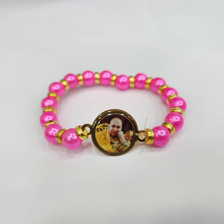 Pink Round Pearl Bracelet with Jai Guruji Swaroop Handmade Bracelets for Men and Women
