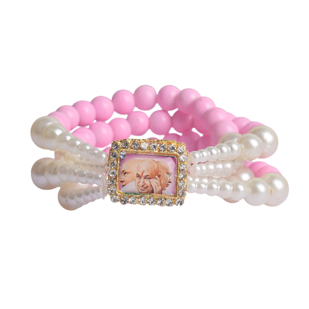 Buy Online | Pink & White Pearl Guruji Swaroop Bracelet | satvikstore.in