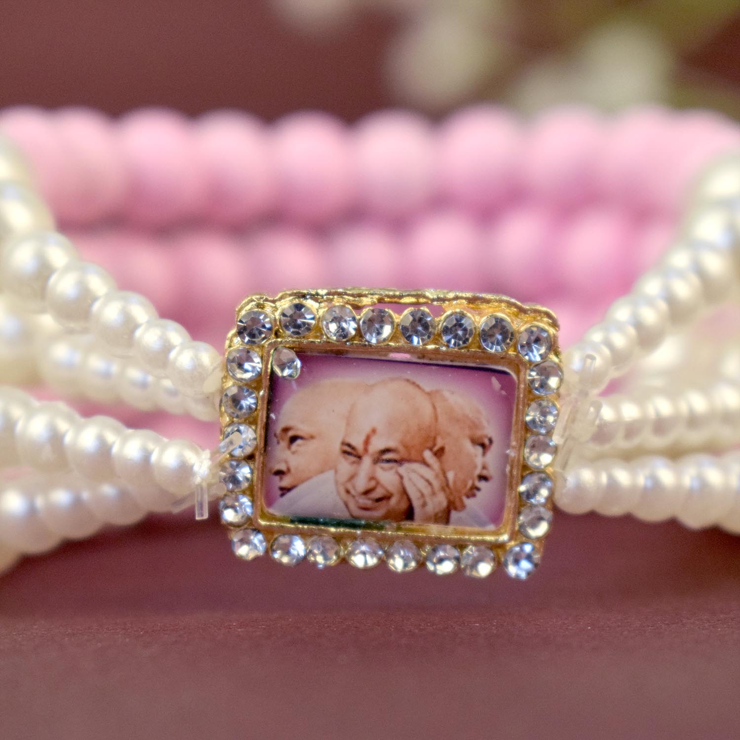 pink white guruji bracelet | pink pearl guruji bracelet | four layer spiritual bracelet | elegant guruji swaroop bracelet | divine pink beads bracelet | white pearl devotional bracelet | jai guruji bracelet | spiritual jewellery india | feminine spiritual bracelet | pooja return gift for women | stylish spiritual bracelet | meditation accessories | guruji bracelet india | graceful spiritual jewellery | indian religious bracelet | satvikstore spiritual products | guruji bracelet online india | pooja items