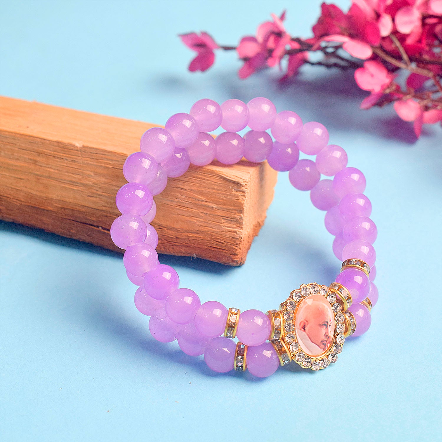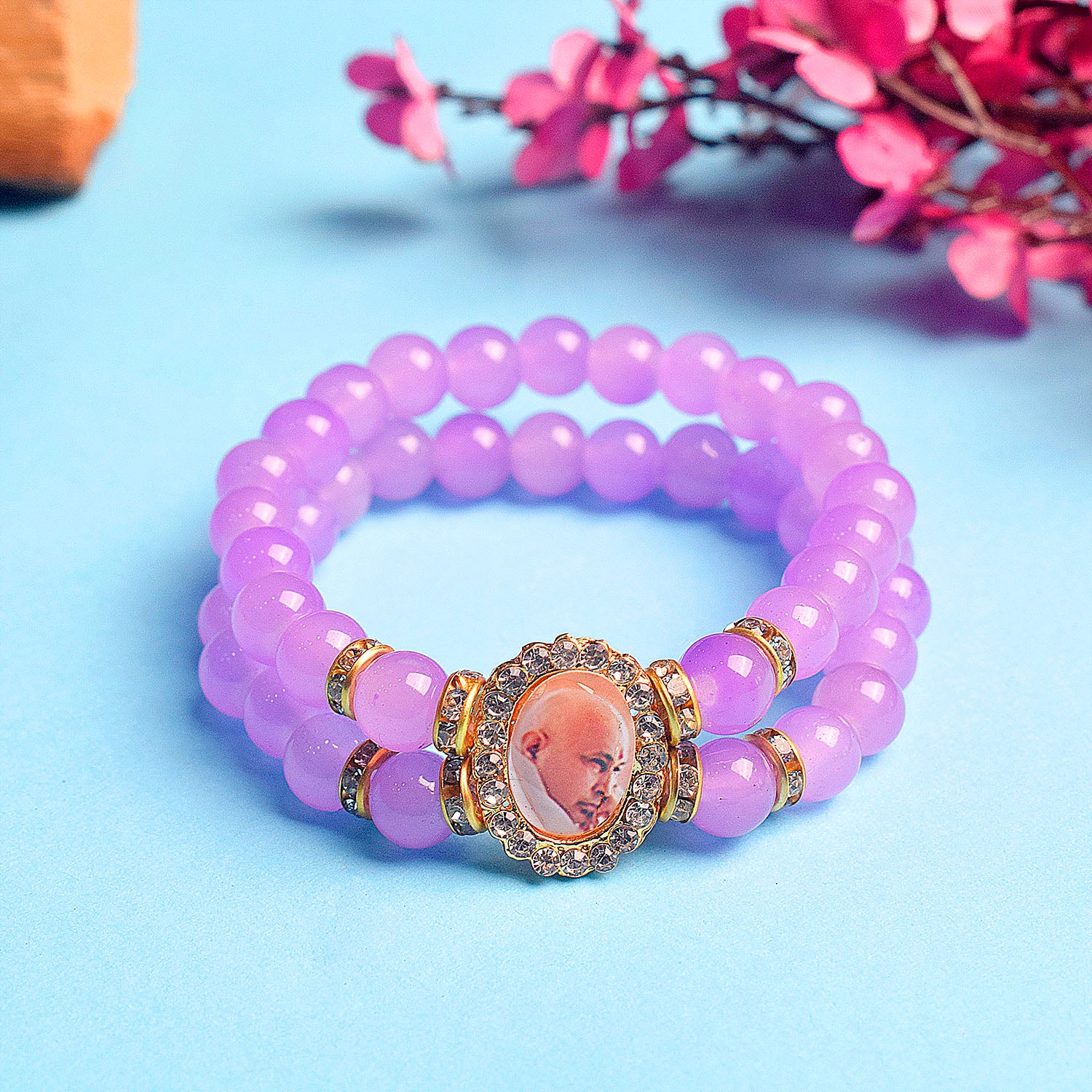 Mauve Beaded Guru Ji Maharaj Bracelet | Shop Online | Satvikstore.in – satvikstore.in