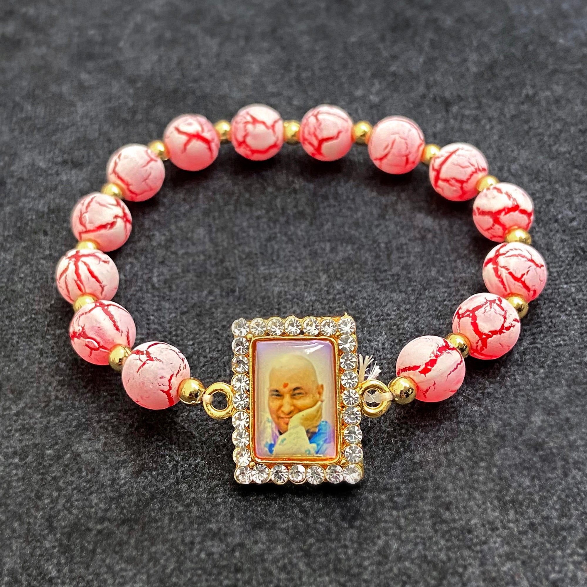 Strawberry Pink Bracelet with Jai Guruji Swaroop
