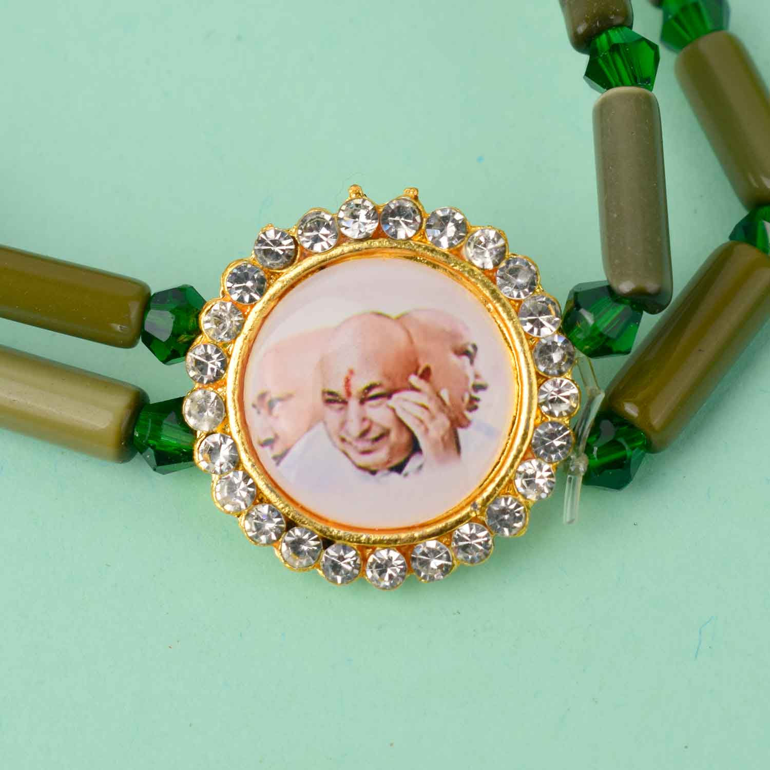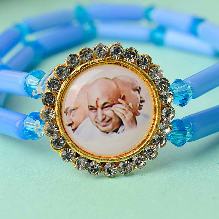 The Vibrant Long Beads Guruji Swaroop Bracelet (Assorted) showcases a striking design using elongated colorful beads that radiate spiritual vibrance and positivity. Carefully handcrafted to suit all wrist sizes, this Guruji Bracelet is ideal for spiritual practices, gifting, or as a thoughtful accessory to pair with your daily wear. Every bracelet holds an essence of devotion and charm.