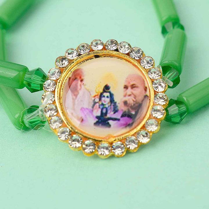 Our Guruji bracelet is a tangible symbol of divine connection. Crafted with care and reverence, it is designed to be worn close to your heart, serving as a constant reminder of Guruji's presence. The bracelet is adorned with sacred symbols and gemstones that hold spiritual significance, channeling positive energy and protection.