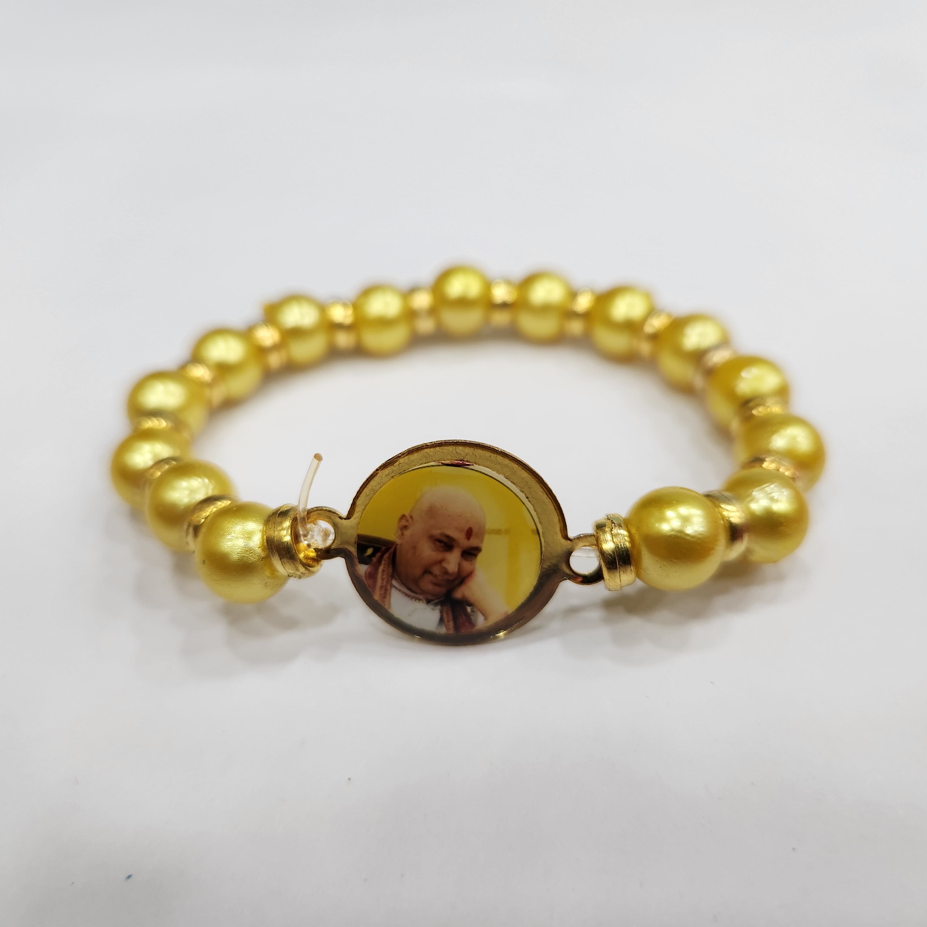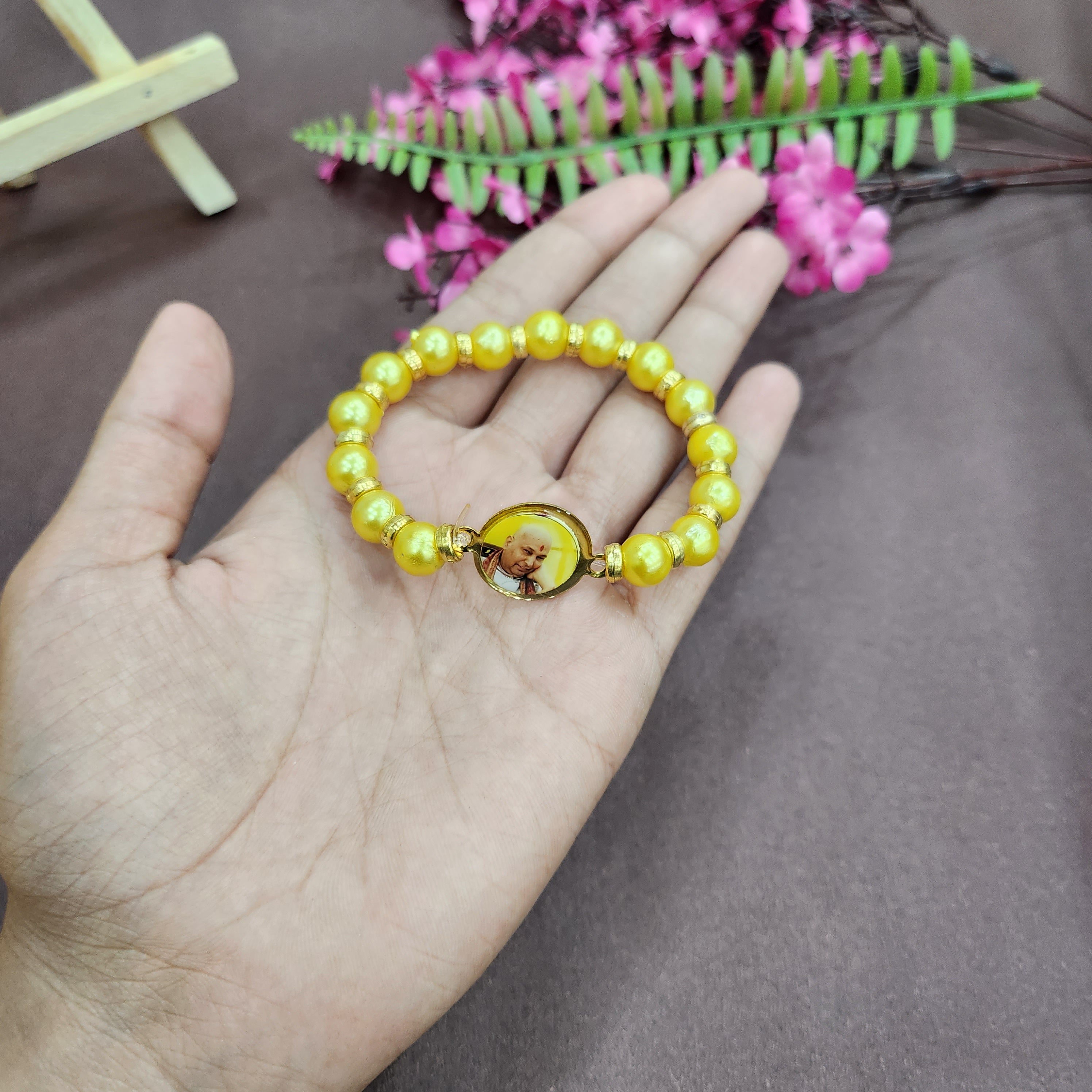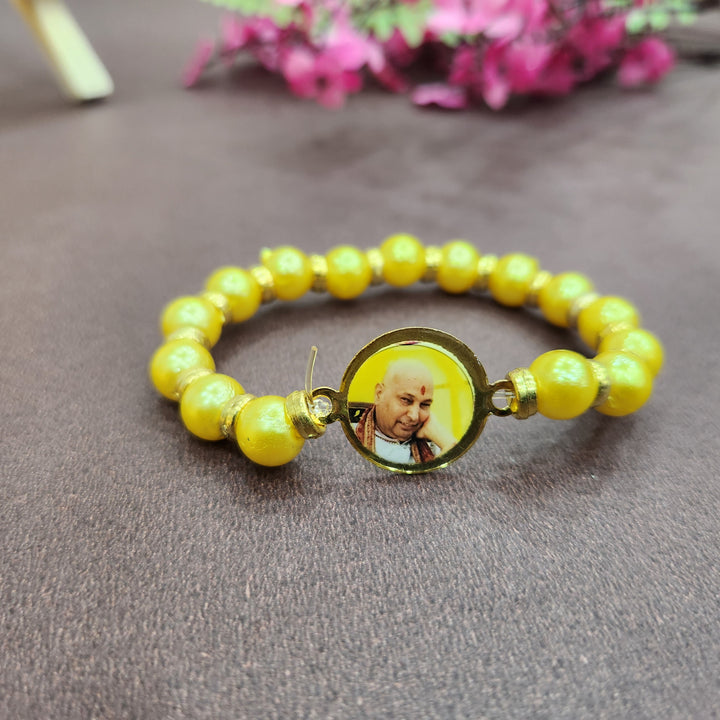 • Item Name: YellowΒ Round Pearl Bracelet with Jai Guruji SwaroopΒ Handmade Bracelets for Men and Women.