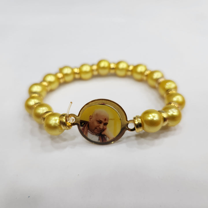 Yellow Round Pearl Bracelet with Jai Guruji Swaroop Handmade Bracelets for Men and Women.