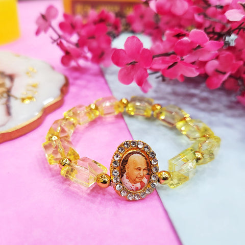 Immerse yourself in the divine aura of Guruji with our intricately designed Swaroop posters. These posters capture the essence of Guruji's spiritual energy, creating a sacred ambiance in your space. - Guruji Swaroop Bracelet: