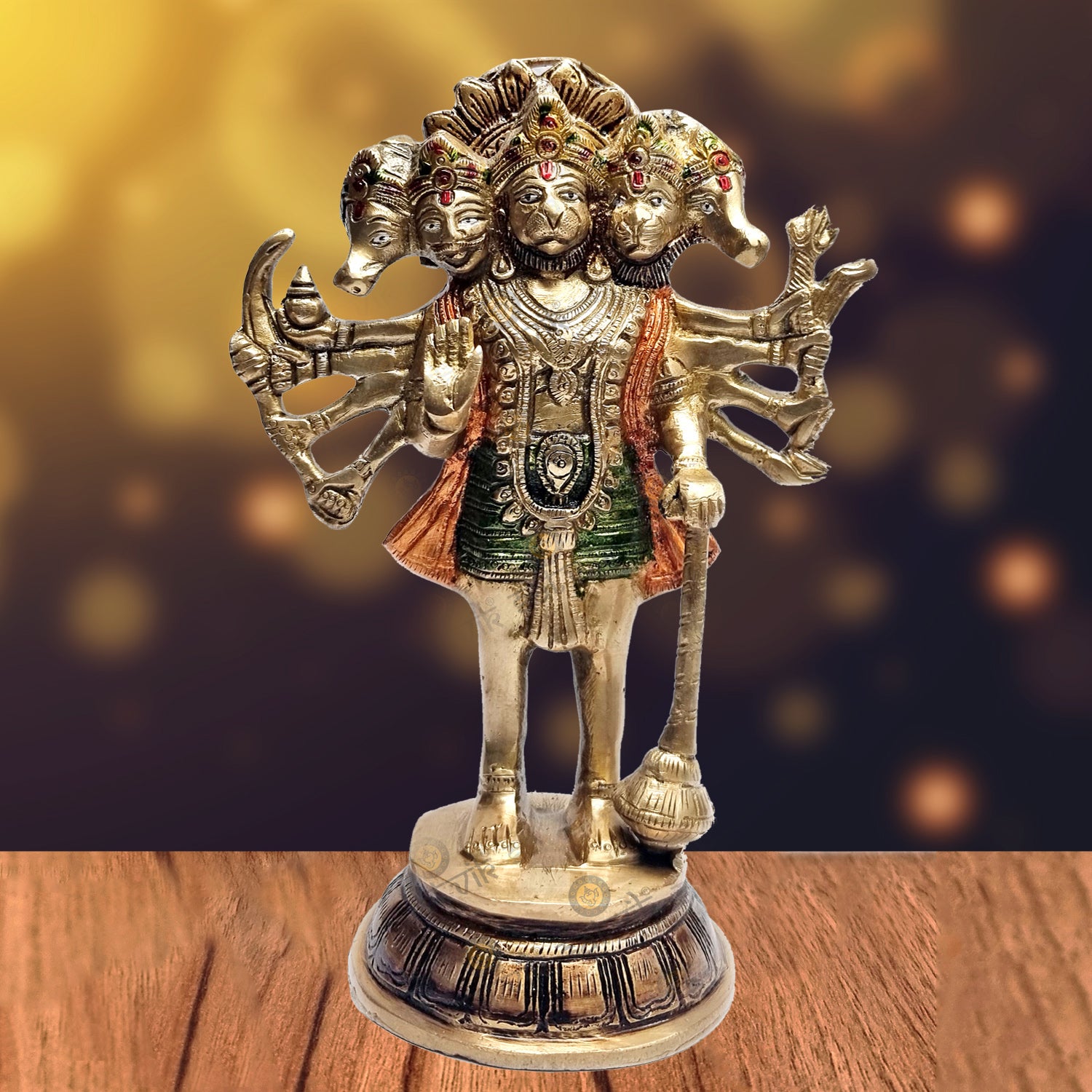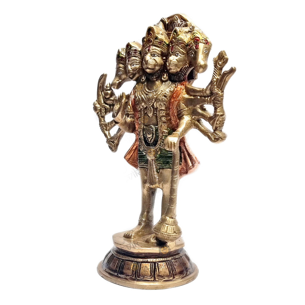 Brass Panchmukhi Hanuman Idol | Puja Room Decor | Brass Gift Item for Housewarming | Brass Standing Panchmukhi Hanuman Idol | Antique Finish Brass Hanuman Idol | Brass Idol | Panchmukhi Hanuman Brass Idol for Temple Decor |