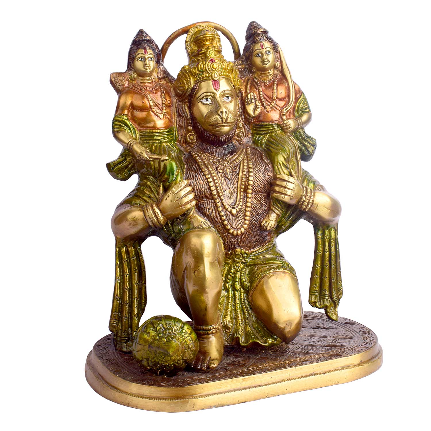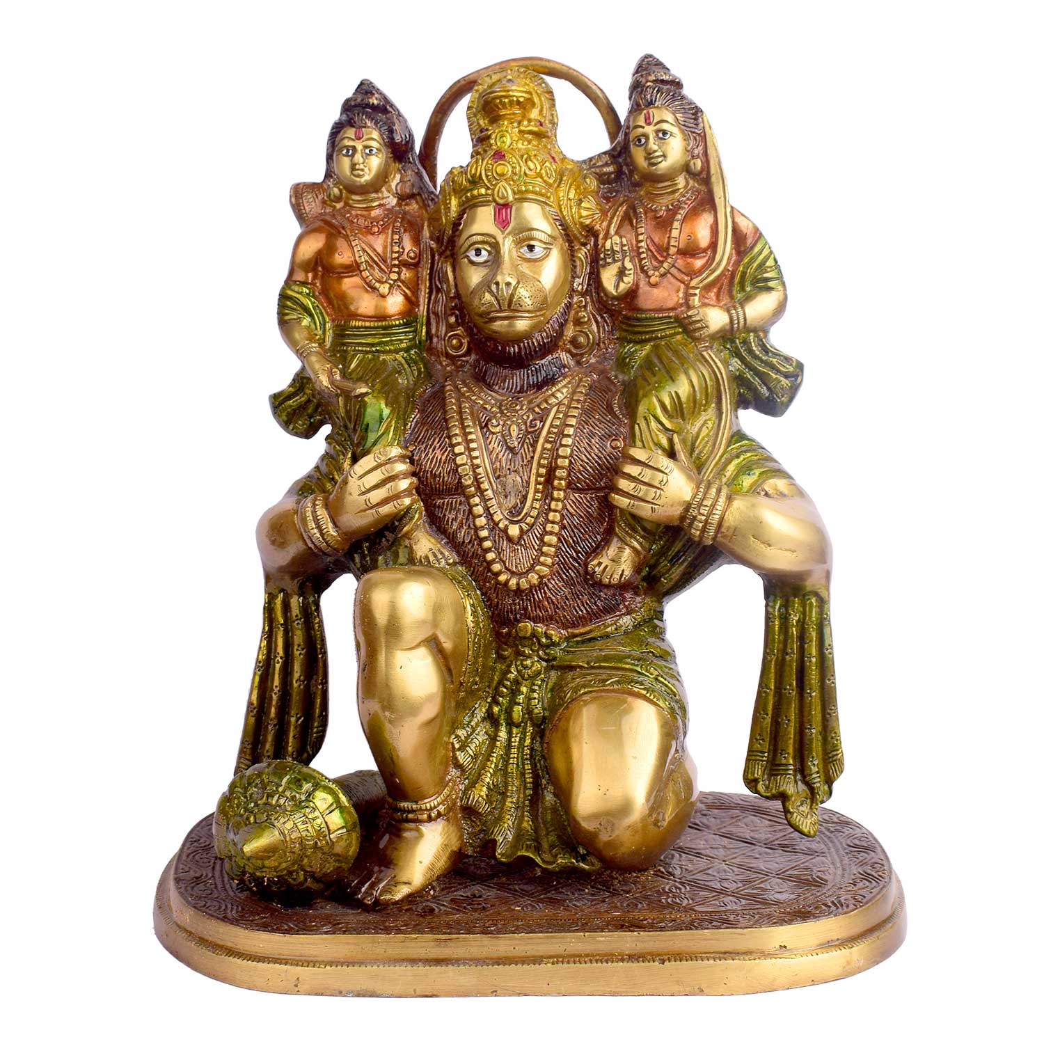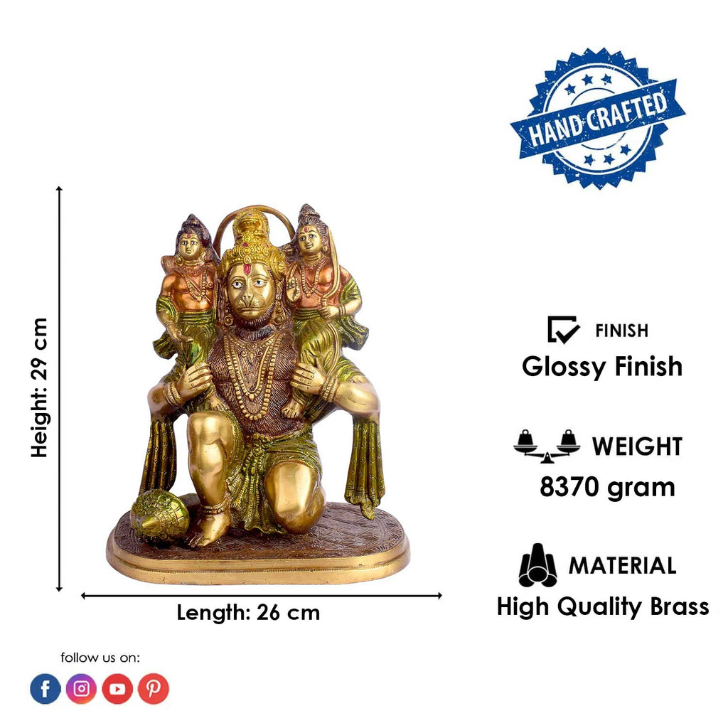• Item Name: 11.4 Inch Hanuman with Ram Laxman on Shoulder Brass Idol