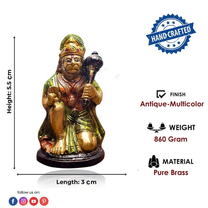 Brass Hanuman Statue | Hanuman Brass Murti | Brass Gift Item for Housewarming |Β  Antique Finish Bajrangbali Statue | Exclusive Brass Idol | Brass Idol | Brass Seated Hanuman Statue |Β