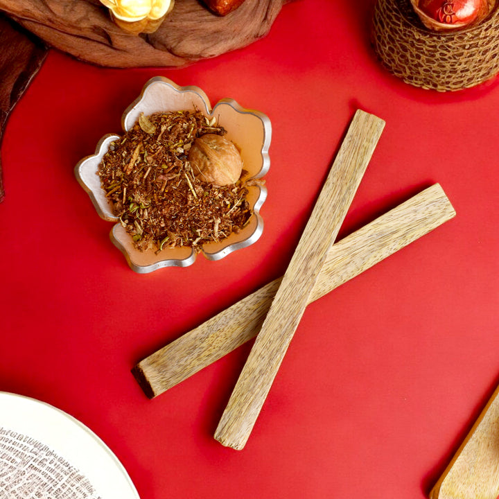 • About Hawan Samidha : Mango wood is used in performing yagna or havan for various purposes such as weddings, Hawan, Puja. Burning mango wood with other havan ingredients purifies and disinfects the air by reducing harmful bacteria.