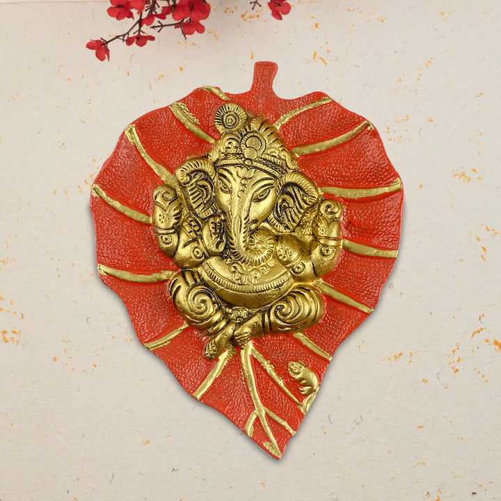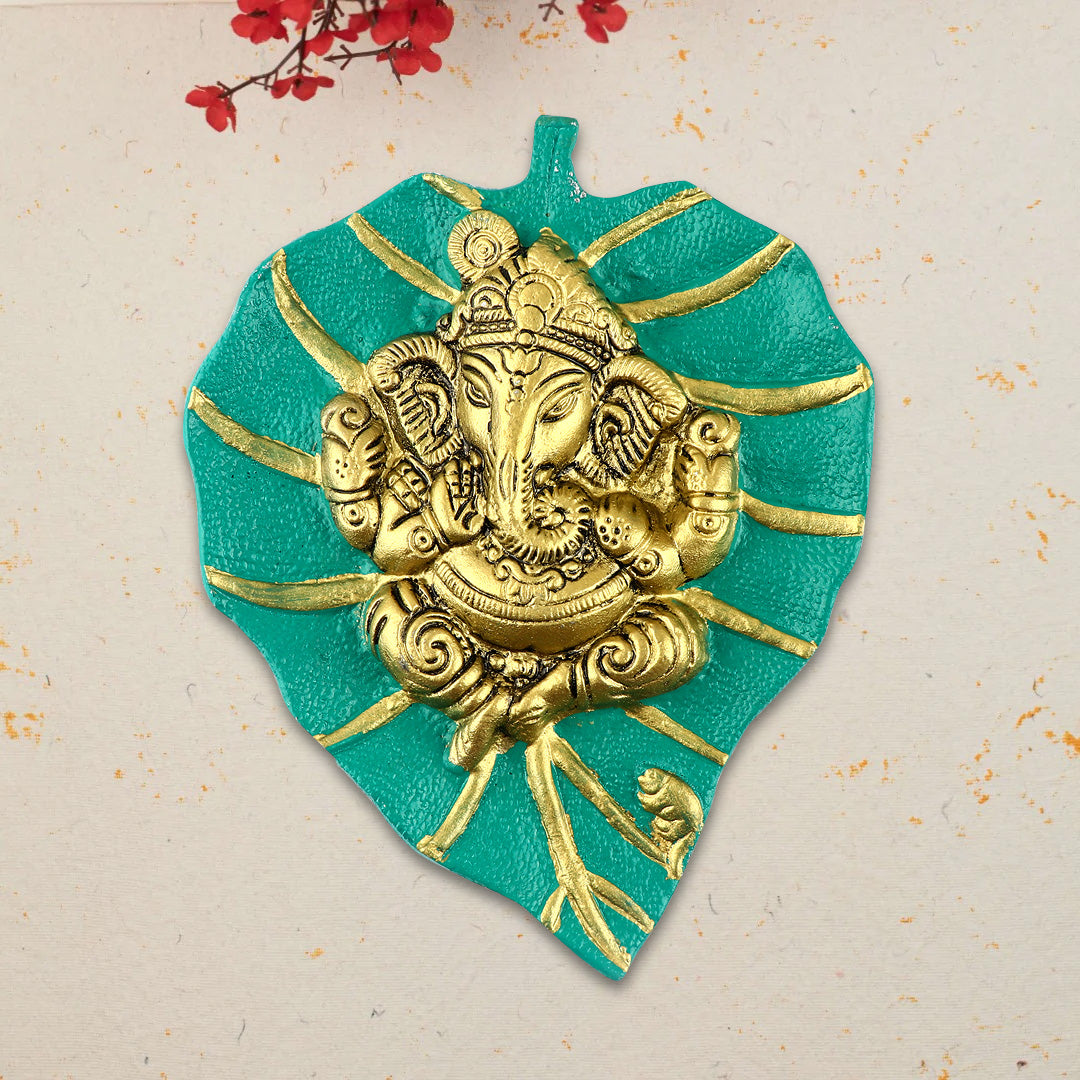 1 Pc Lord Ganesh on Leaf Patta Wall Hanging