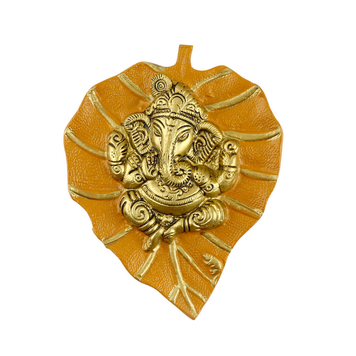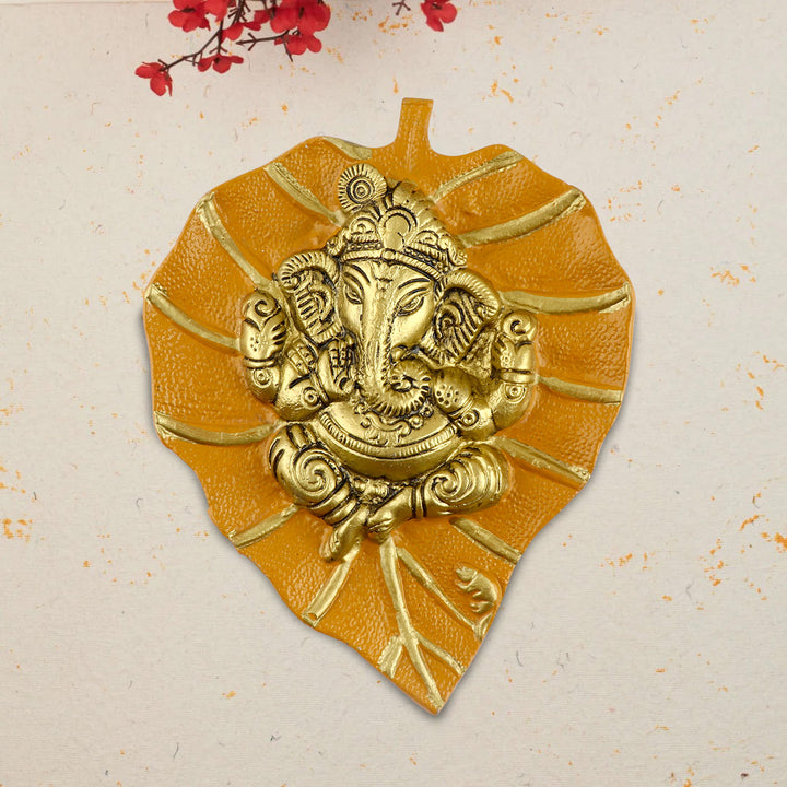 Buy Lord Ganesh on Leaf Patta Wall Hanging Yellow | Satvikstore.in – satvikstore.in