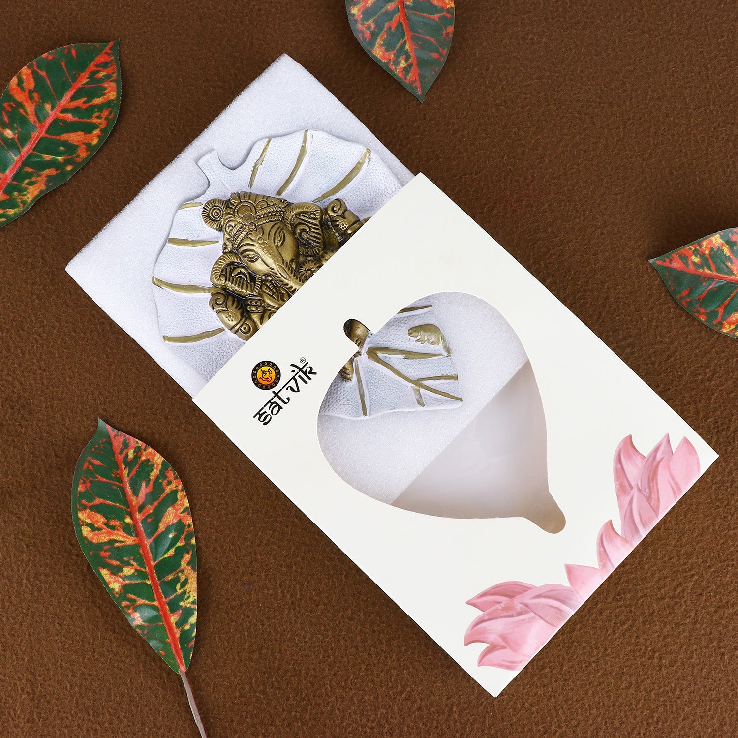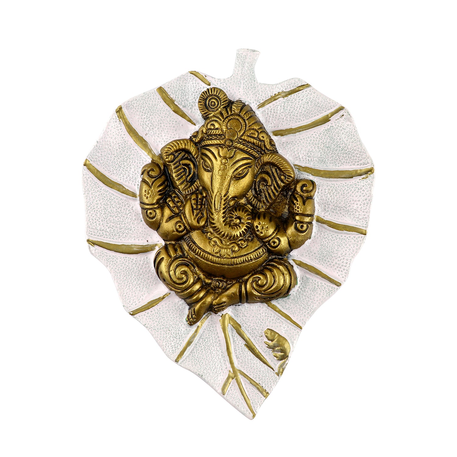 About product: Satvik Presents Designer Lord Ganesha On Leaf which is ideal for wall Hanging Decor for homes, offices, and Mandir. This Ganpati Sculpture has detailed work and it is made up of Premium Quality Material, Comes with Premium Gift Packing. Ganesha is a Symbol of the God of Success, Patron Of Music, Remover of Obstacles, and many other aspects. The Ganesha with a peepal leaf at the back is known as the most suitable Ganesha posture that ensures good luck and prosperity.