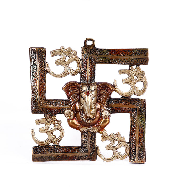 • Item Name: 7.6 Inch Alluring Pure Brass Om Swastik Ganesh Wall Hanging