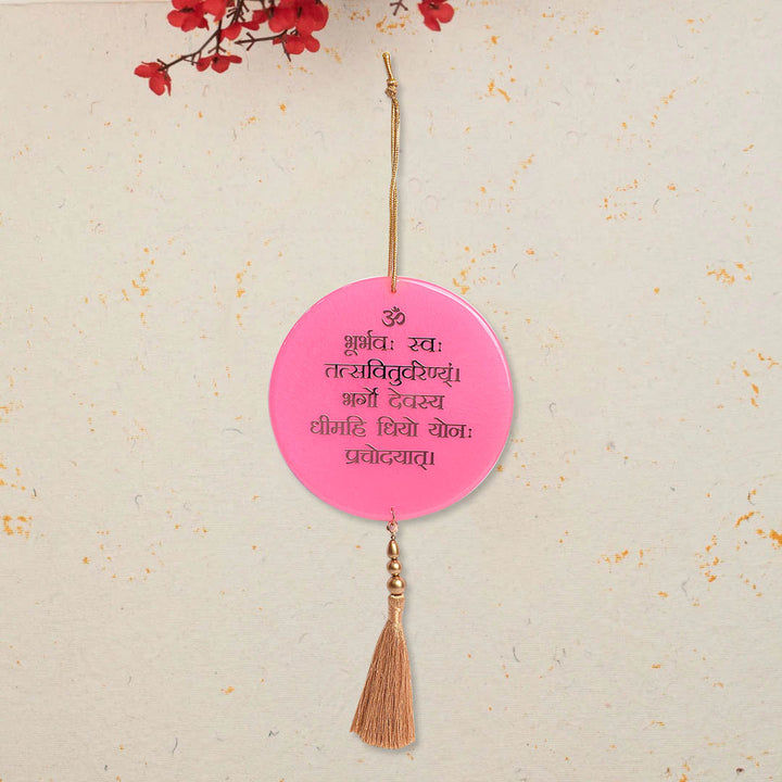Decorative Epoxy/Resin Gayatri Mantra Pink Frame Car/Wall Hanging
